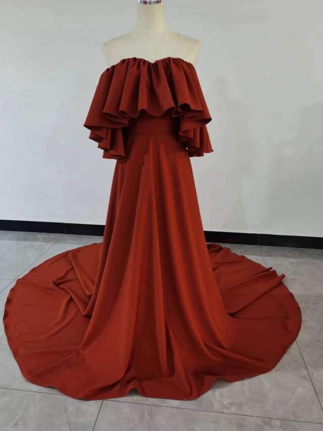 カラードレス テラコッタ色 オフショルダー ロングトレーン 前撮り