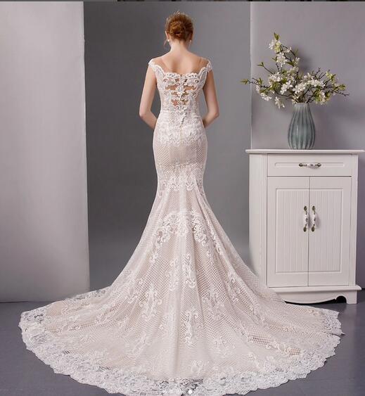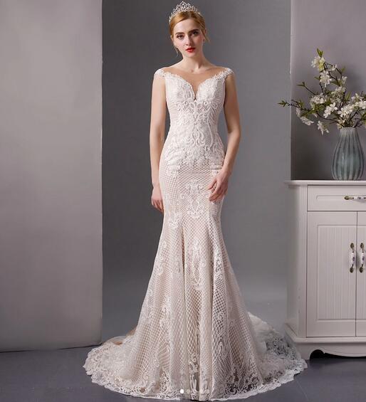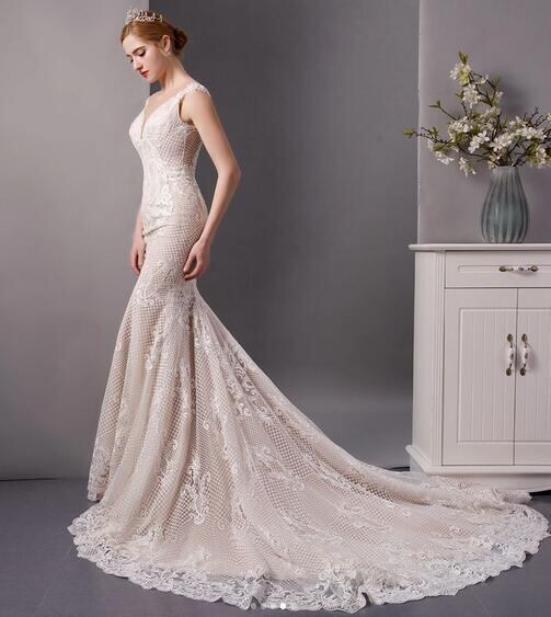 高品質!ウエディングドレス マーメイドライン 優雅なシルエット 可憐な花刺繍 繊細総レース トレーン 披露宴/演奏会/音楽会
