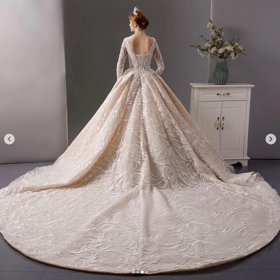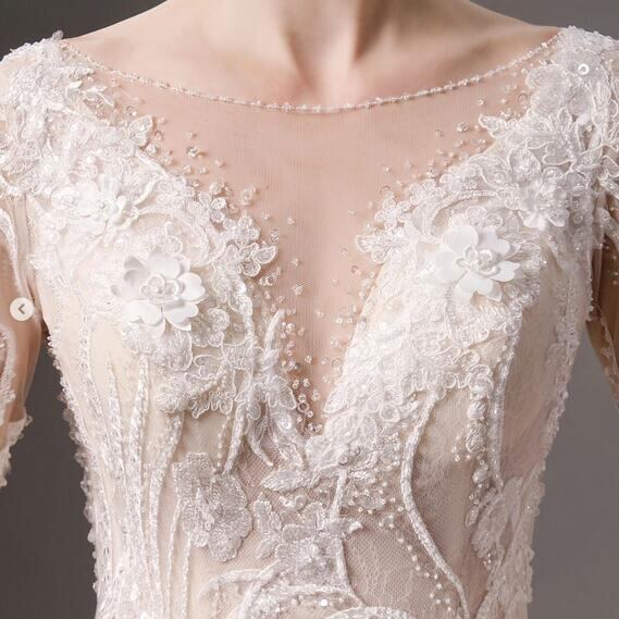 上品!ウエディングドレス 華やかなトレーン 背中見せ/バックレス Vネックドレス 優雅なシルエット 花柄のモチーフ刺繍が美しく 披露宴/演奏会/音楽会