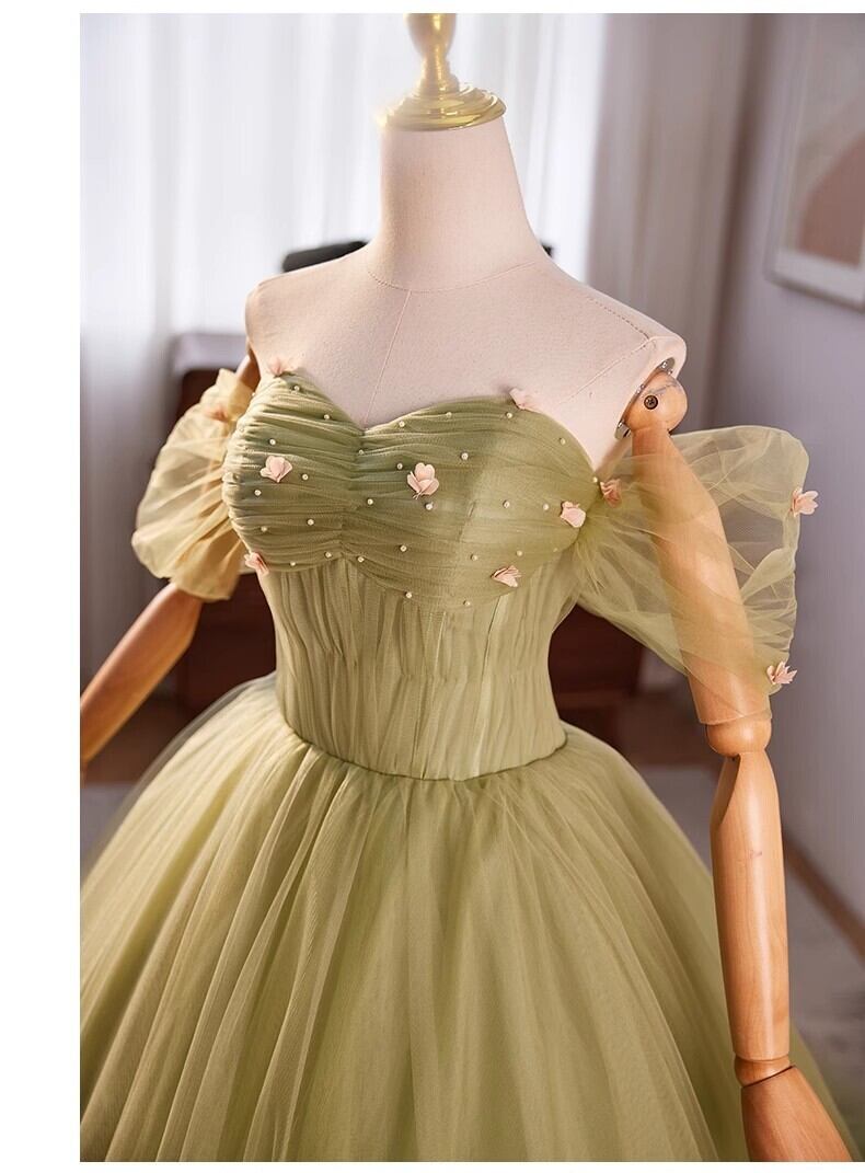 送料無料!グリーン ベアトップ カラードレス ソフトチュール パーティードレス 披露宴/演奏会/音楽会