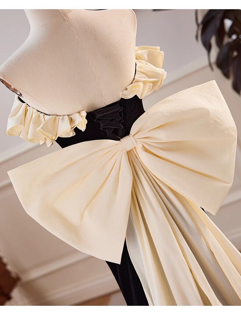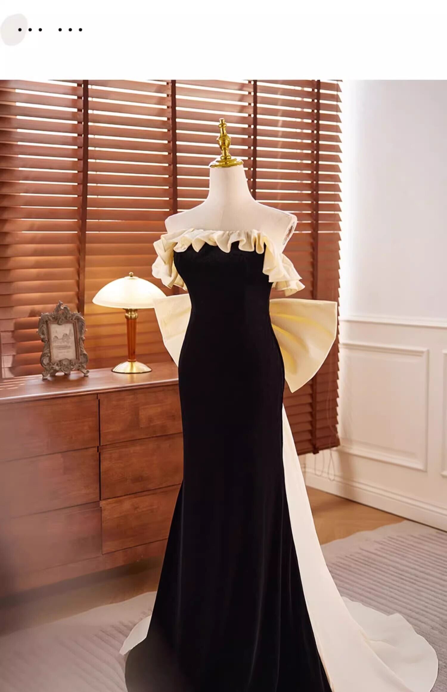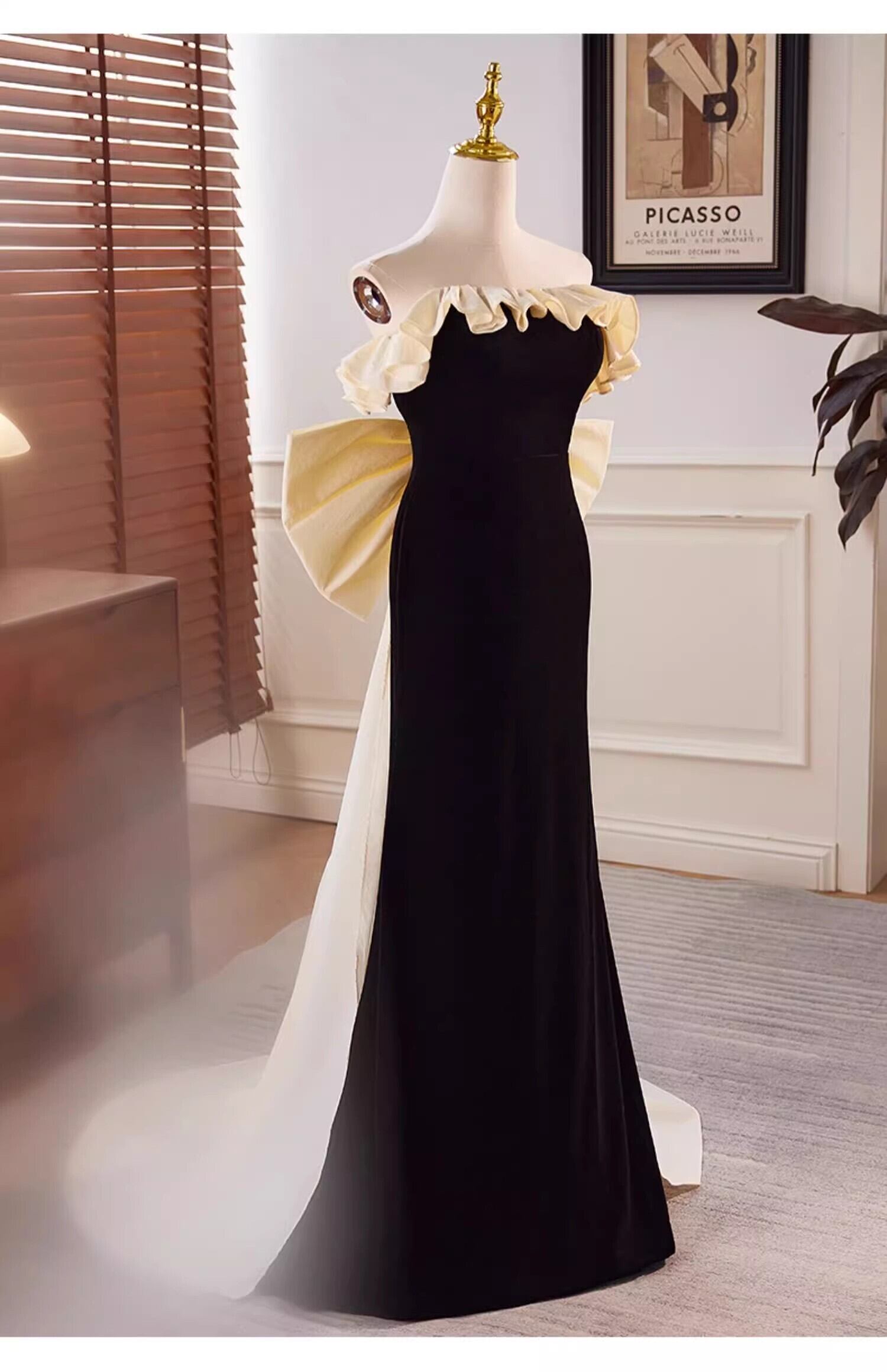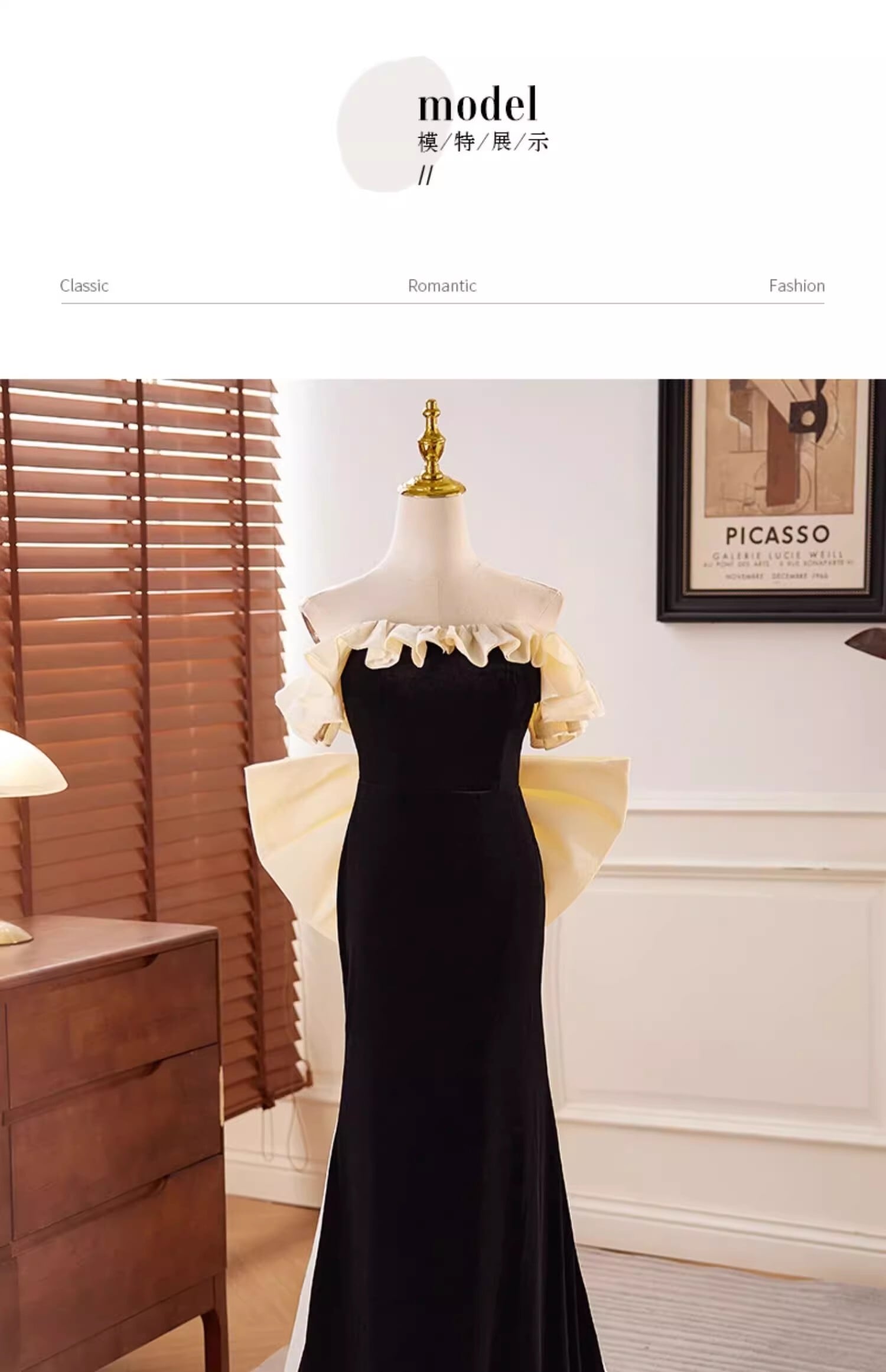 高品質!カラードレス 黒 レンダーライン ロング マーメイドライン パーティーふっくら柔らかなバックリボン /披露宴/演奏会/音楽会