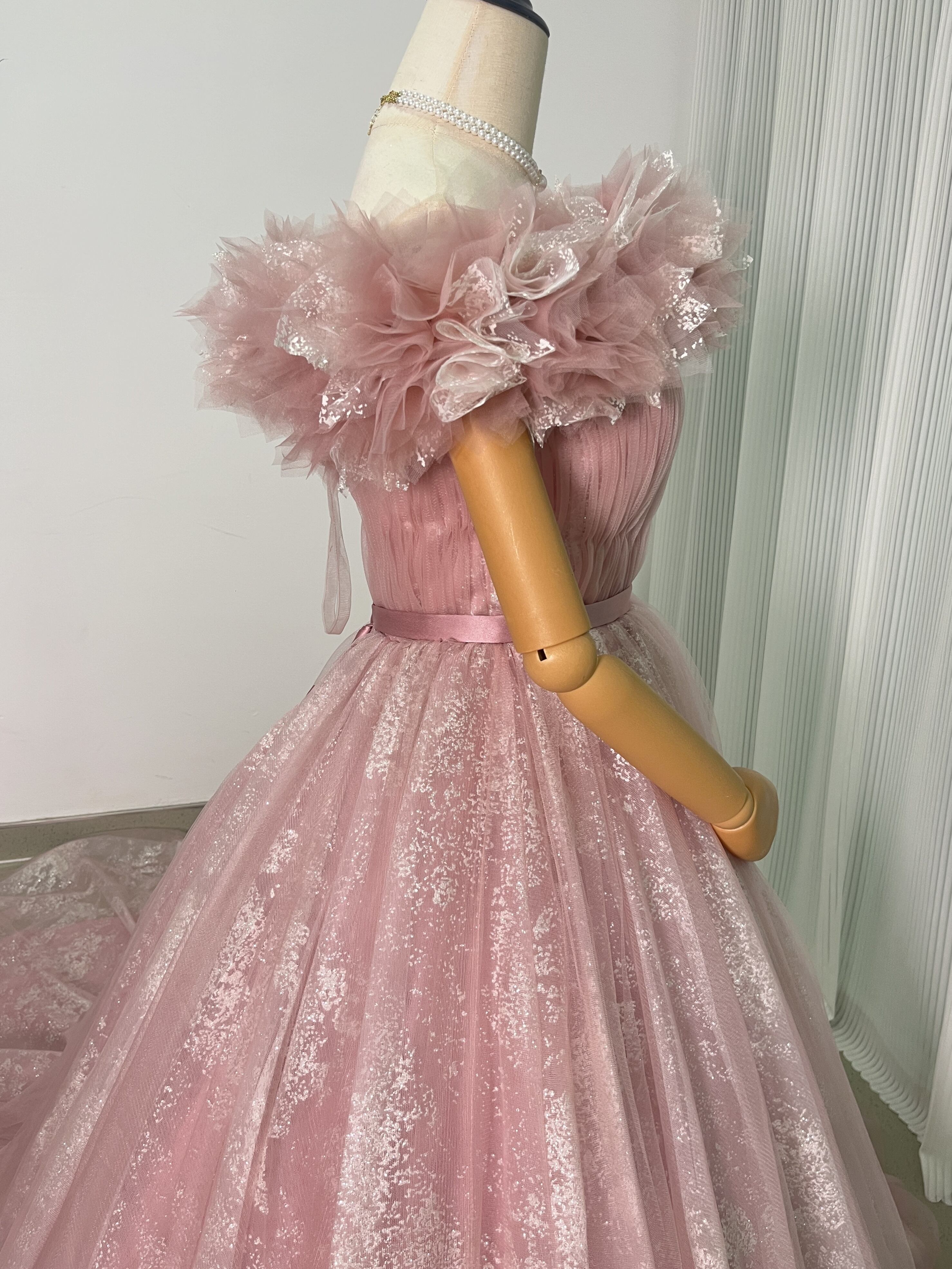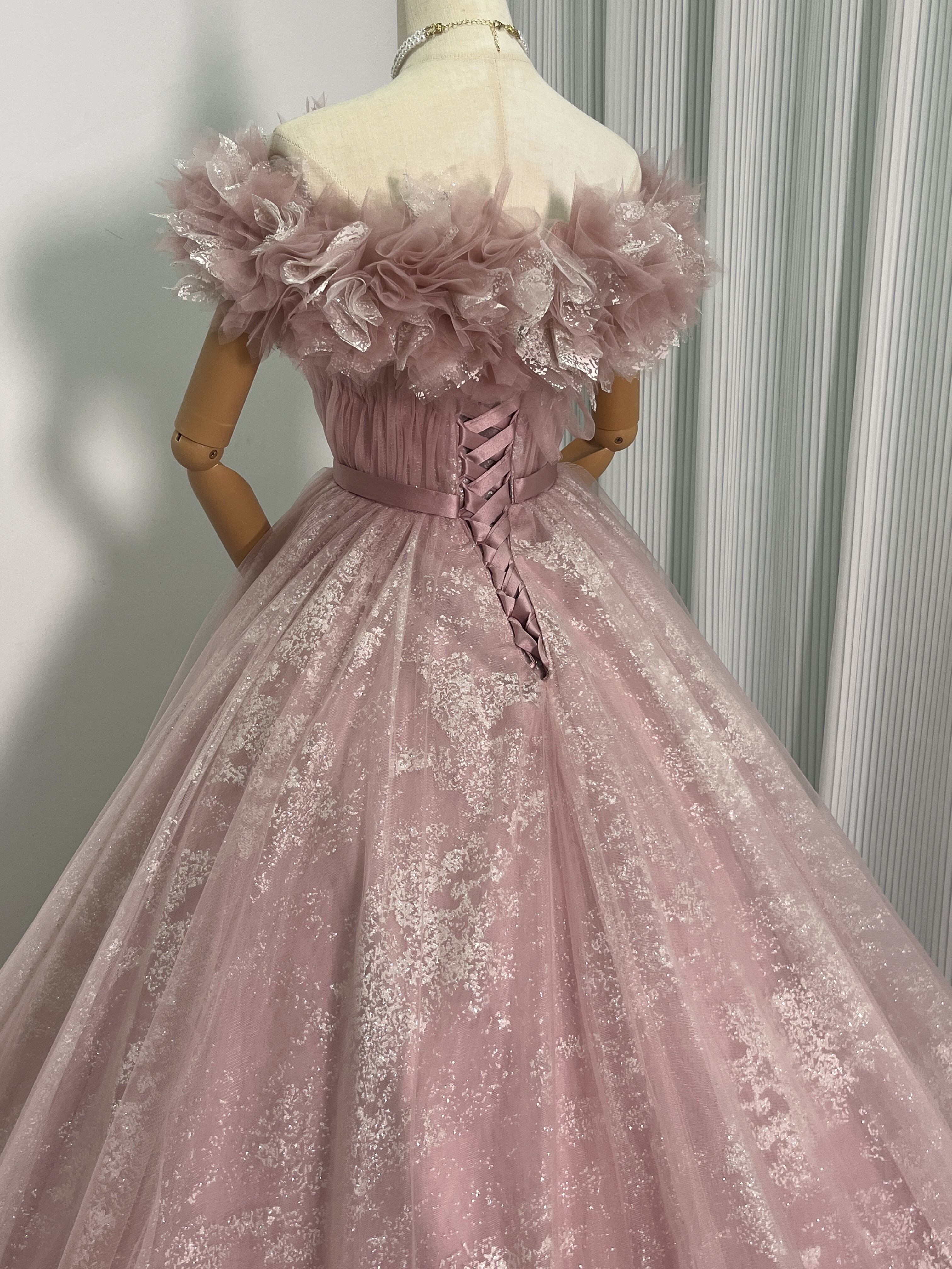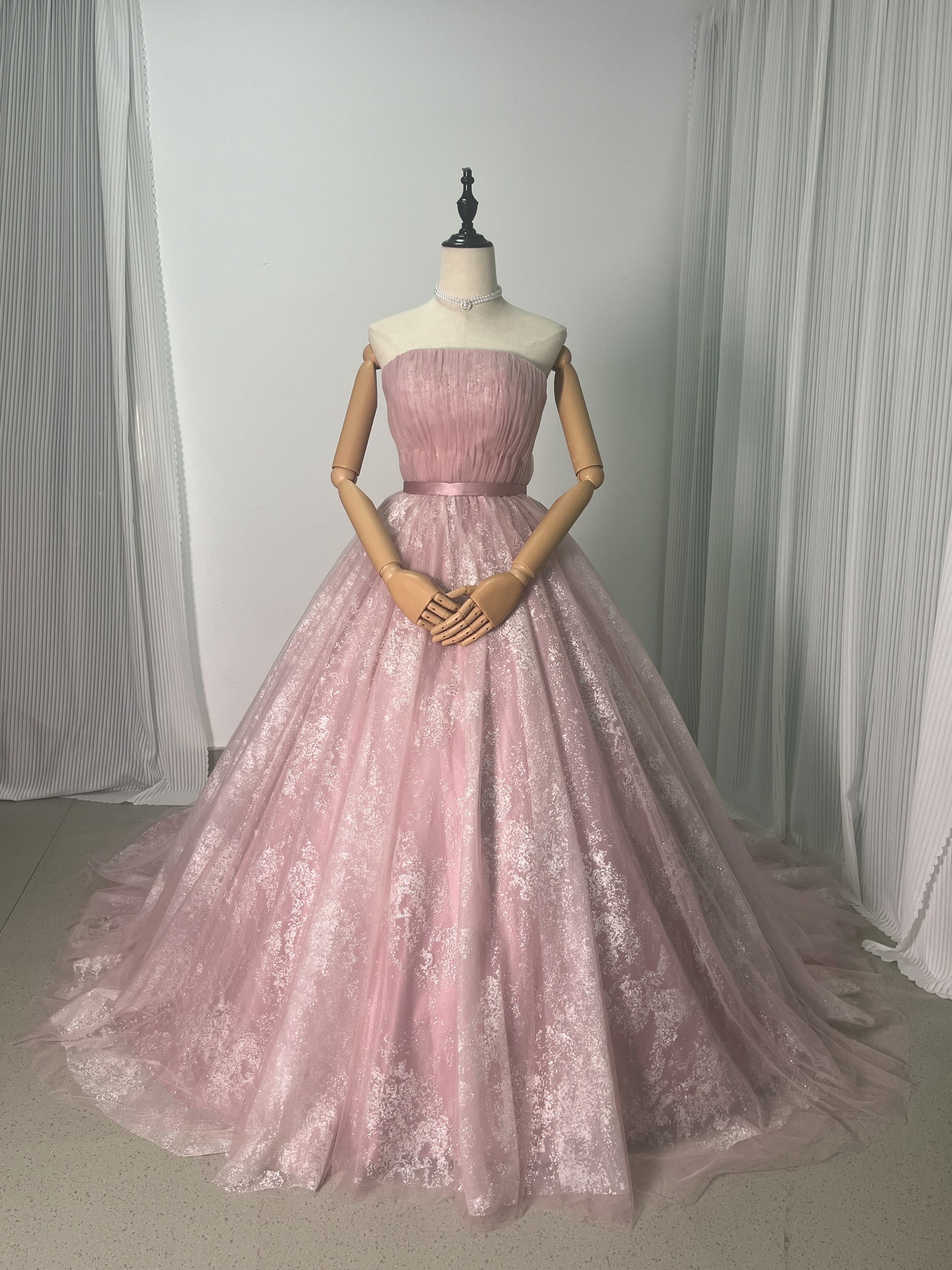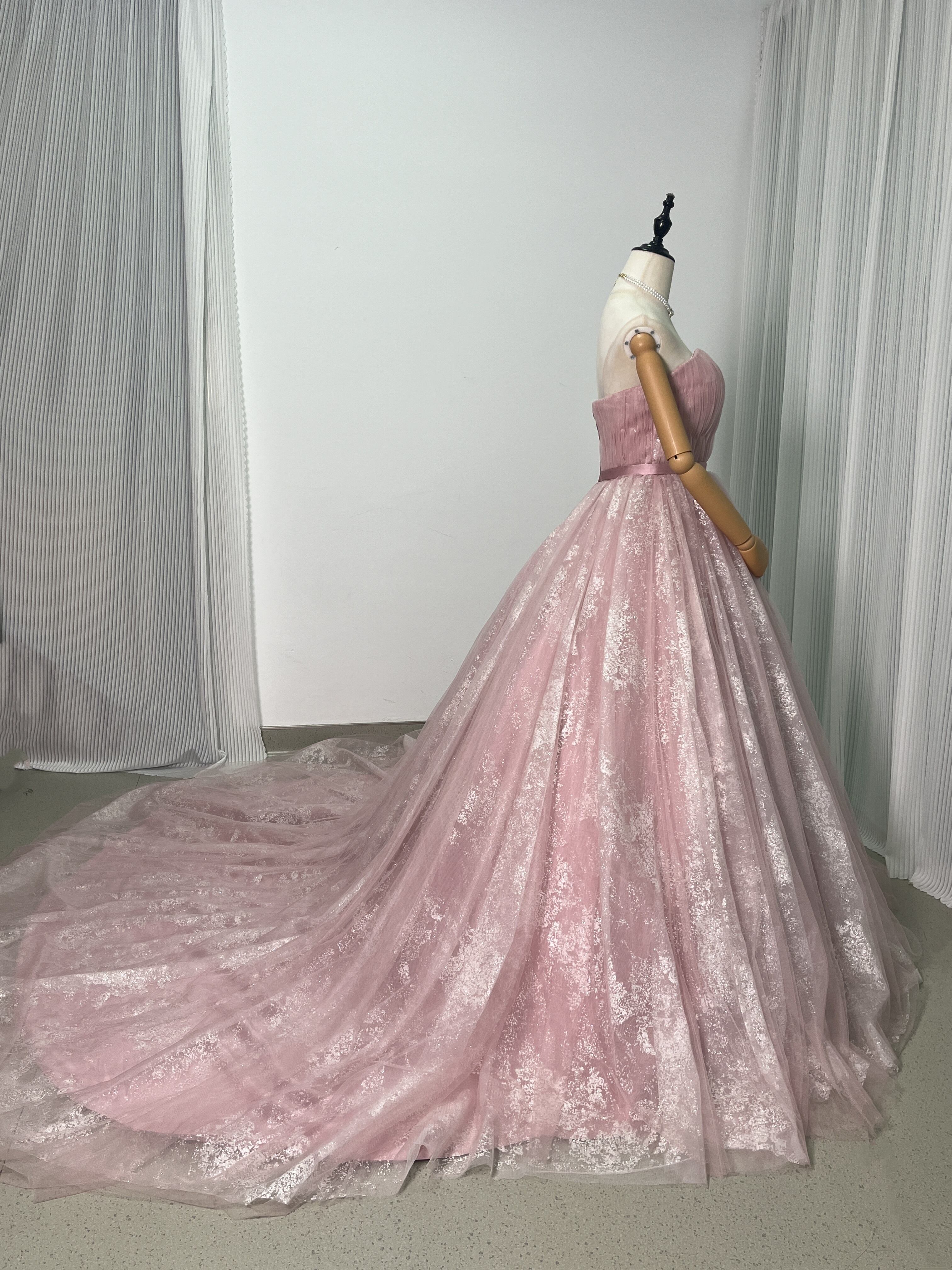 ピンク ベアトップ 取り外しオフショルダー カラードレス ソフトチュール パーティードレス 披露宴/演奏会/音楽会
