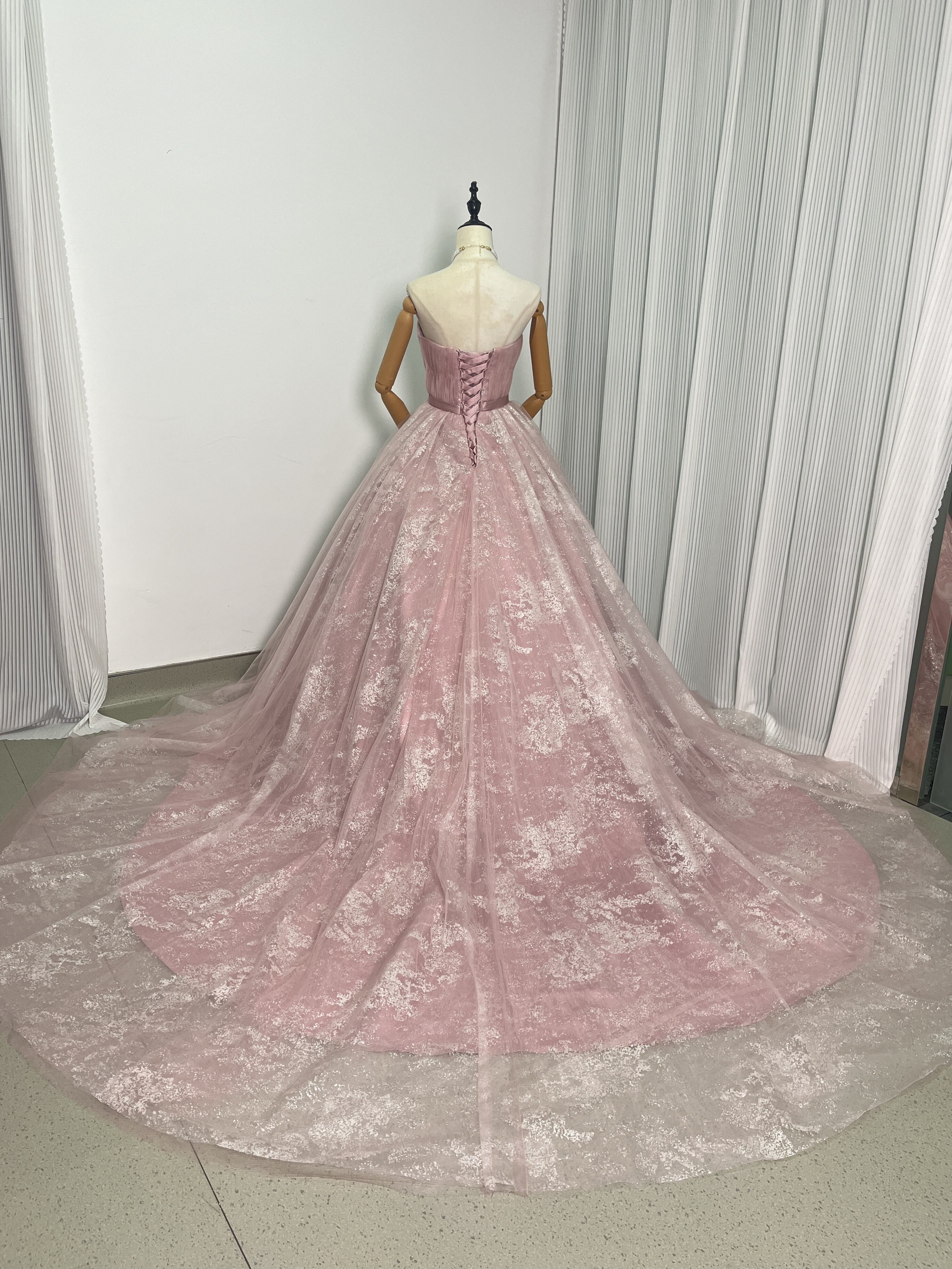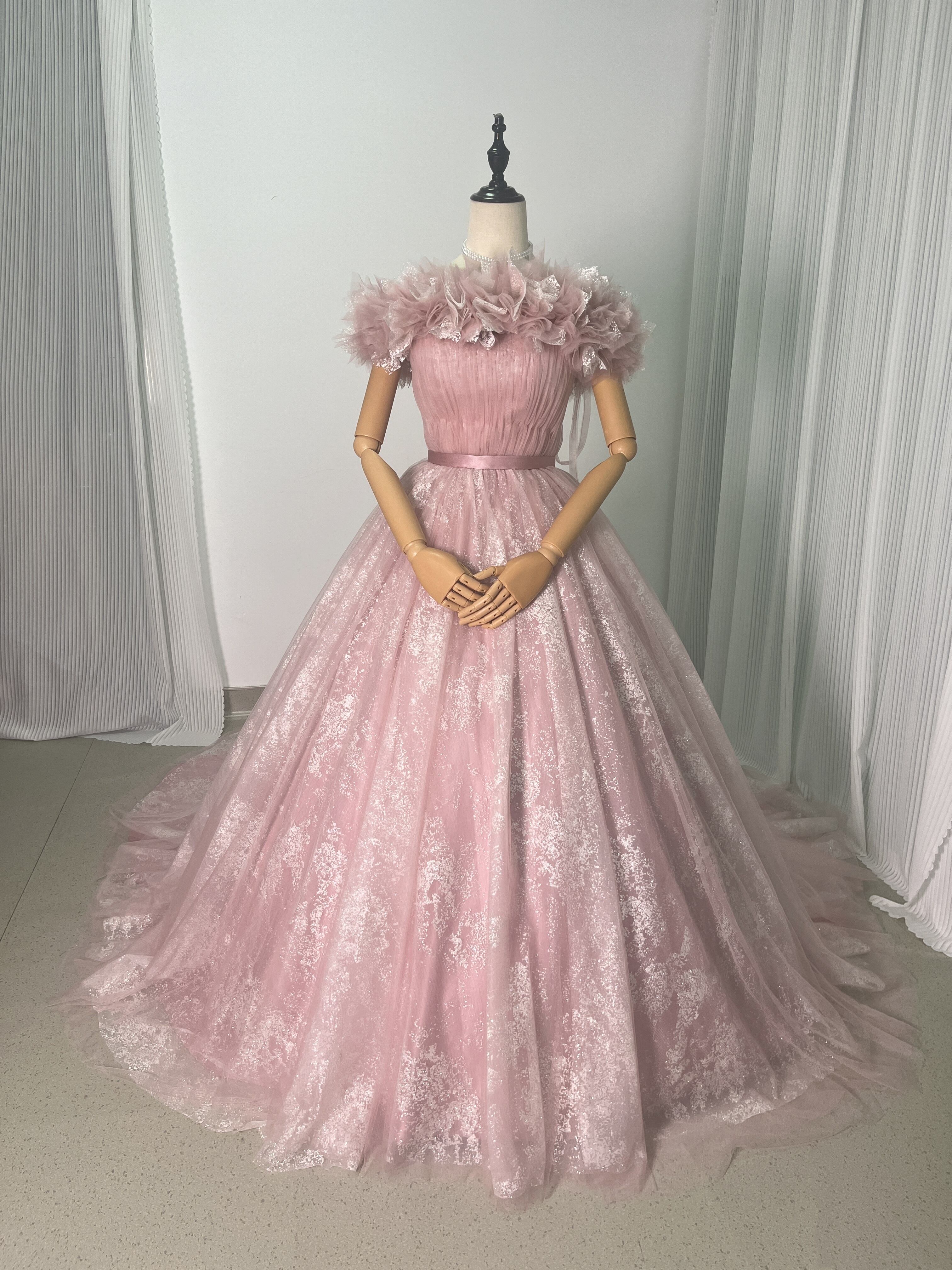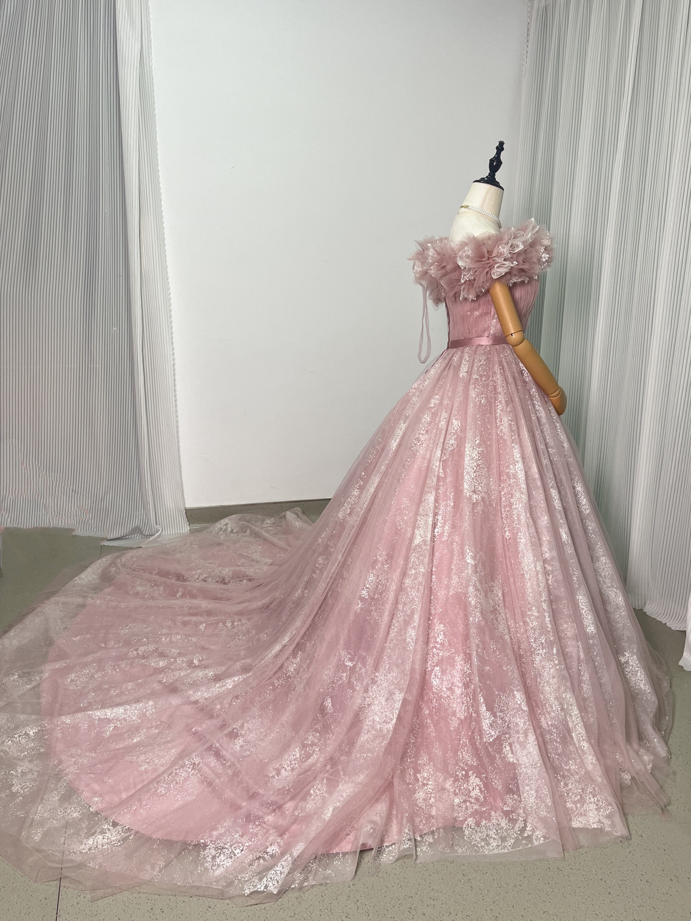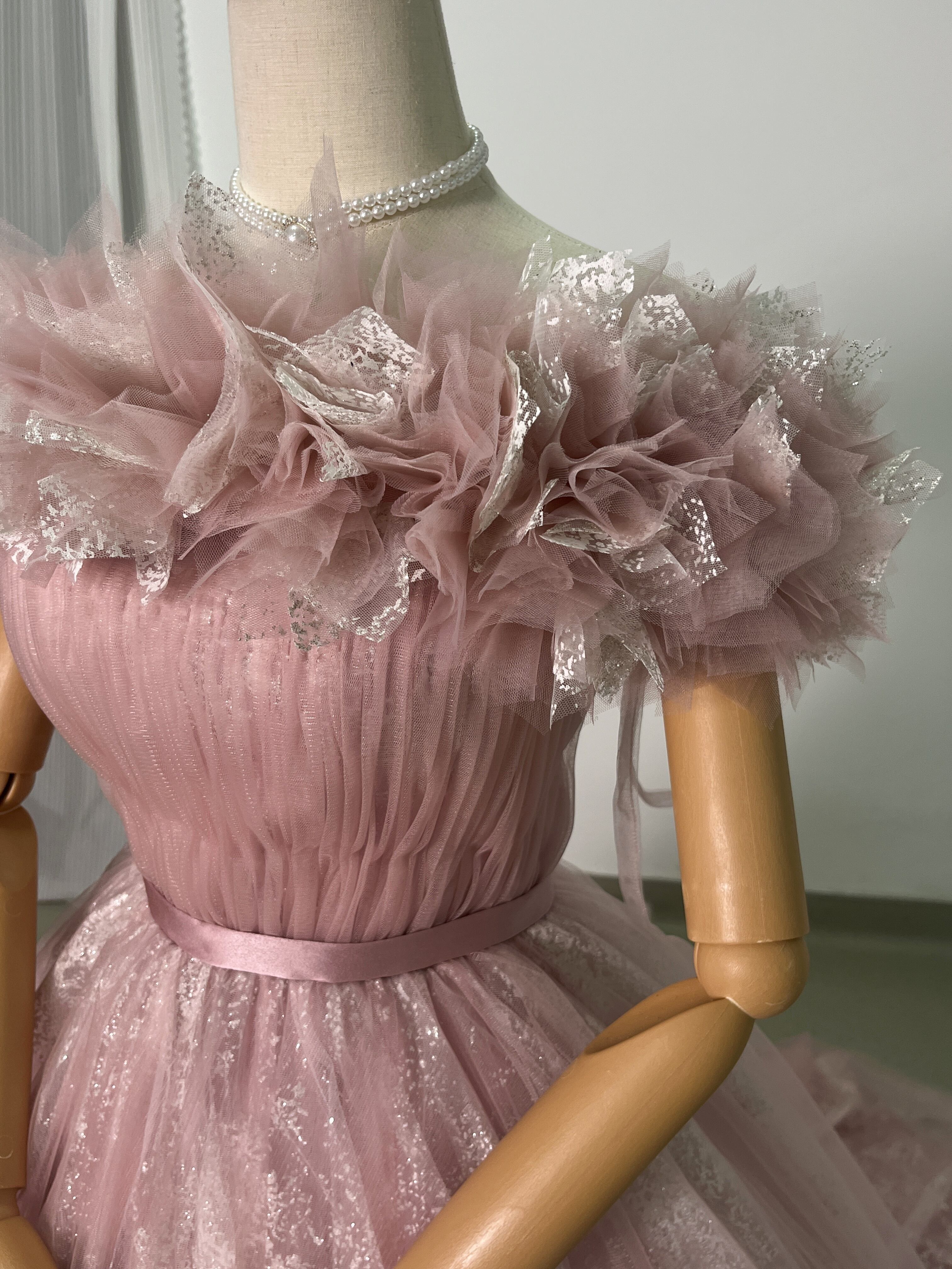 ピンク ベアトップ 取り外しオフショルダー カラードレス ソフトチュール パーティードレス 披露宴/演奏会/音楽会