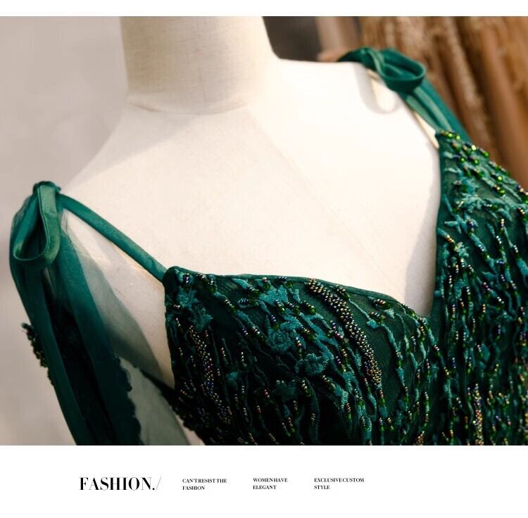 送料無料!グリーン キラキラスパンコール カラードレス ソフトチュール パーティードレス キャミソール 披露宴/演奏会/音楽会