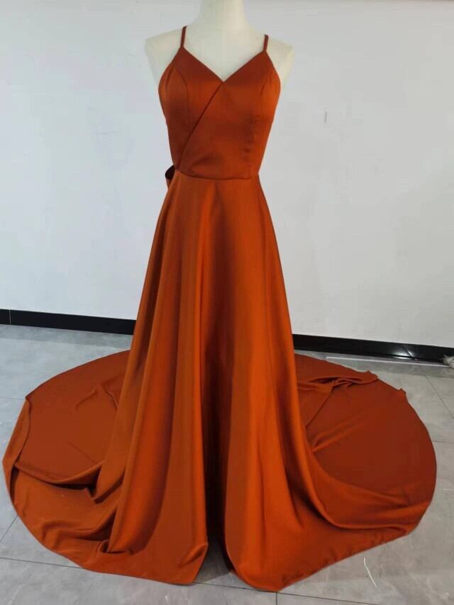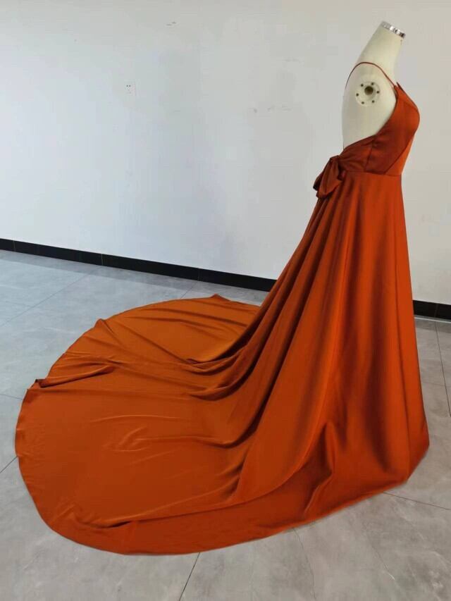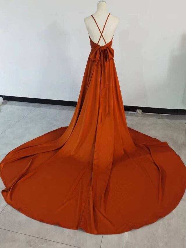高品質!高級イタリアサテン パーティードレス テラコッタ色 リボン 背中見せ 前撮り結婚式 2次会
