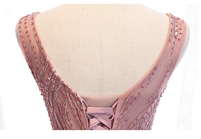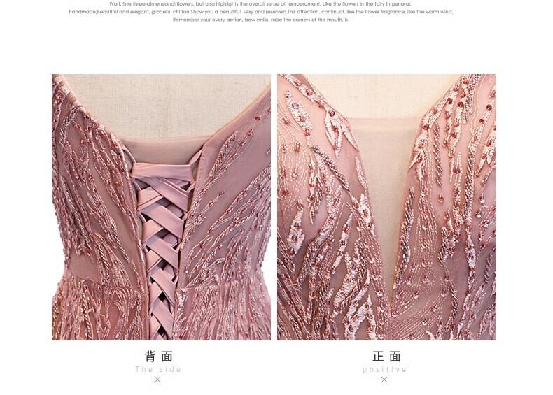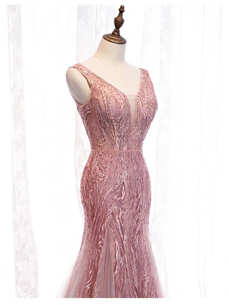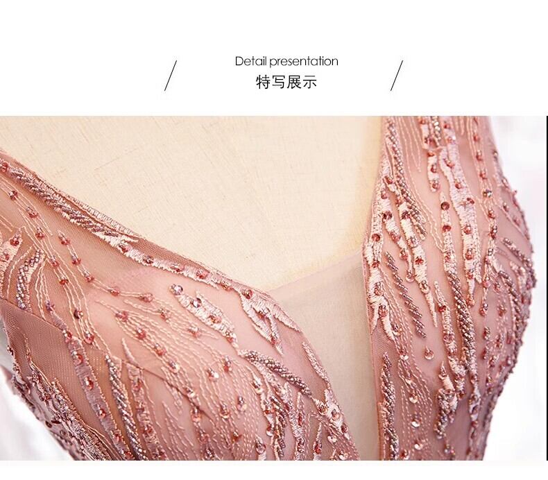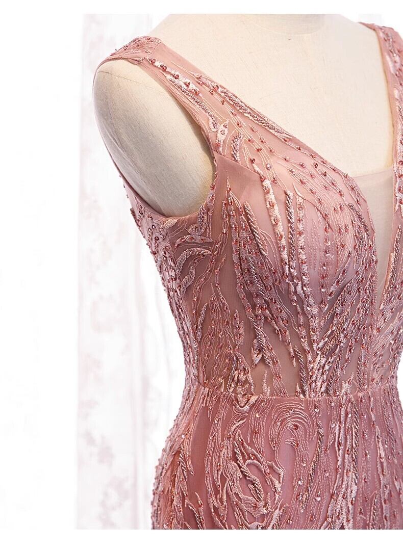 上品花レース ピンク Vネック カラードレス キラキラスパンコール ソフトチュール マーメイドライン 披露宴/演奏会/音楽会