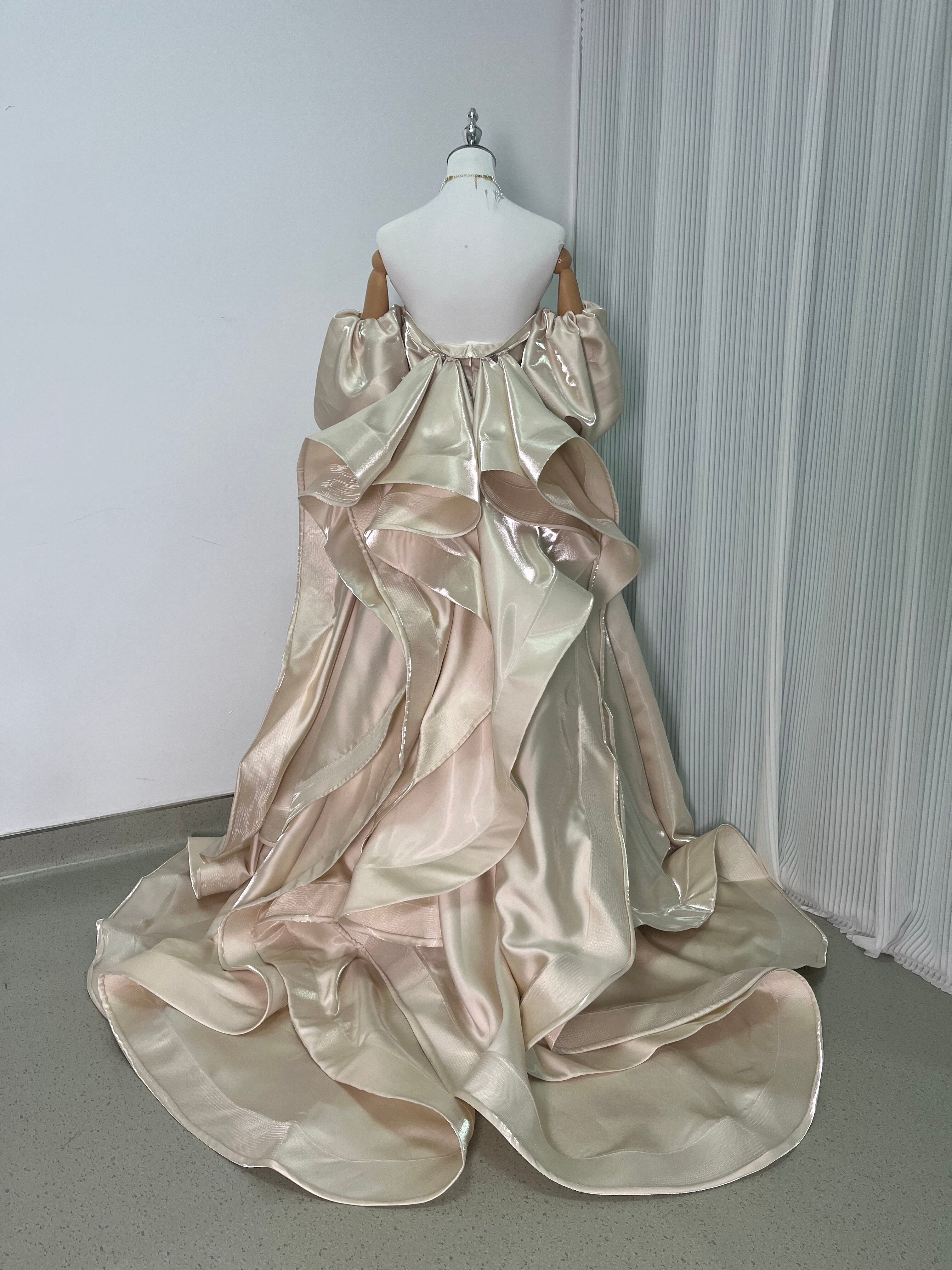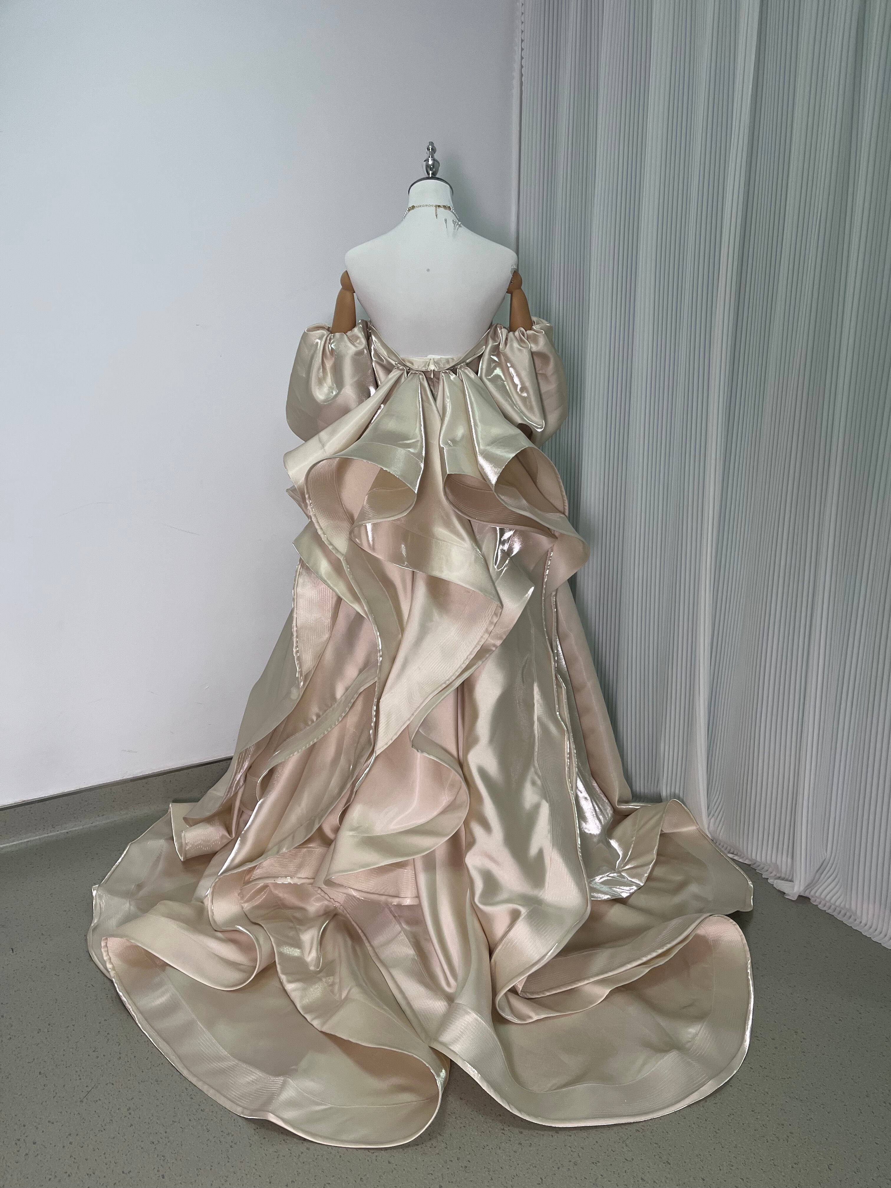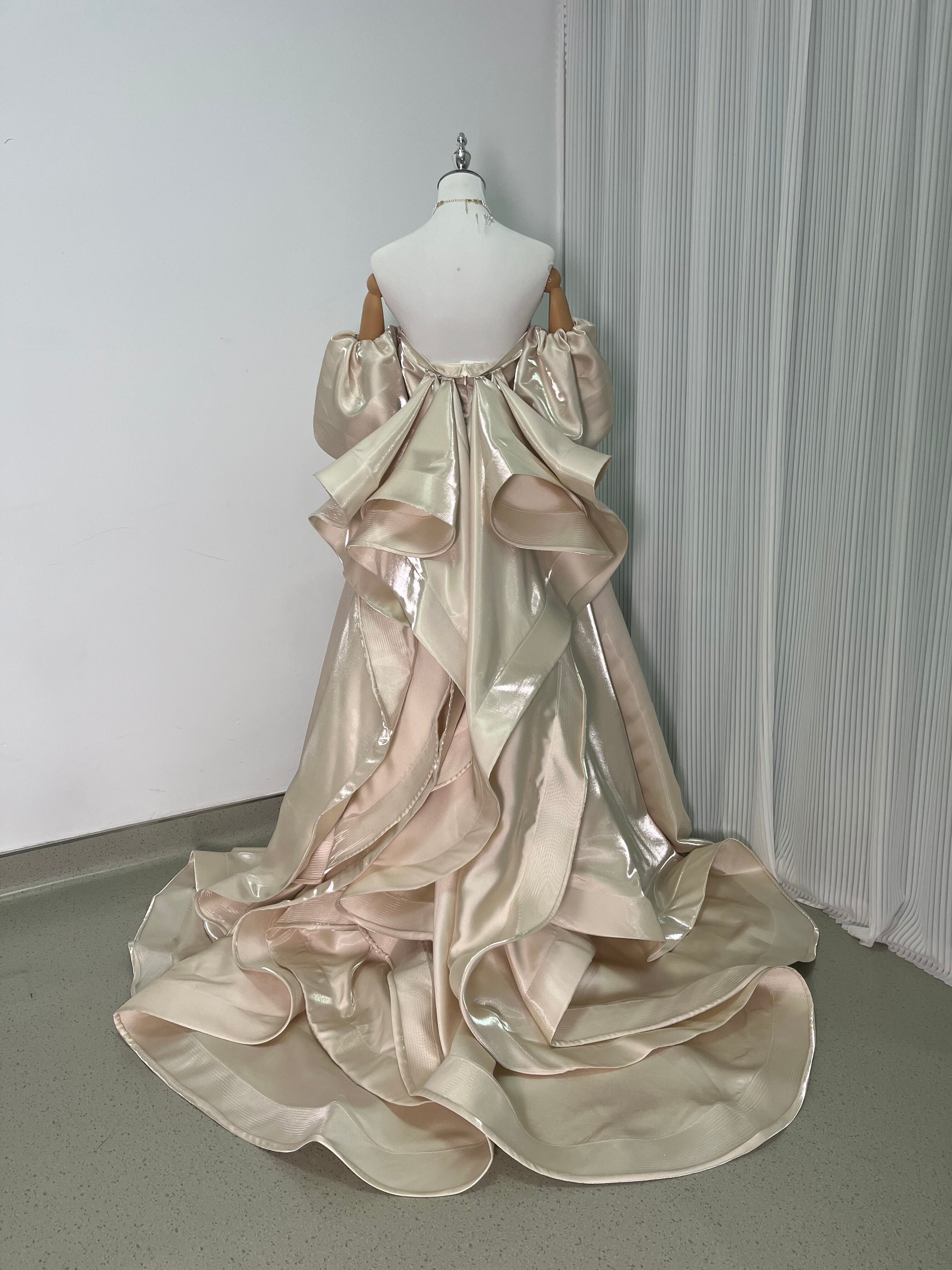 輝きな光彩を放つ ふっ カラードレス くら柔らかなバックリボン 華やかなトレー/前撮り/花嫁/結婚式