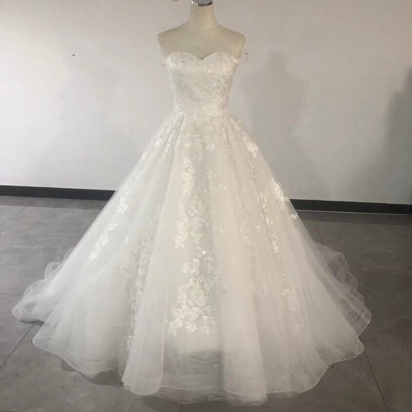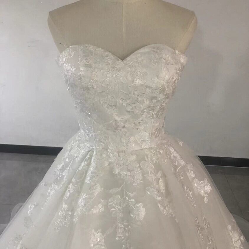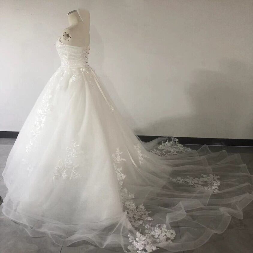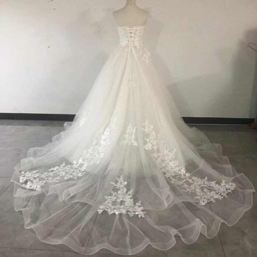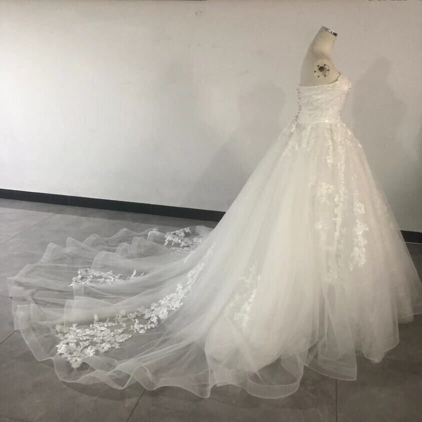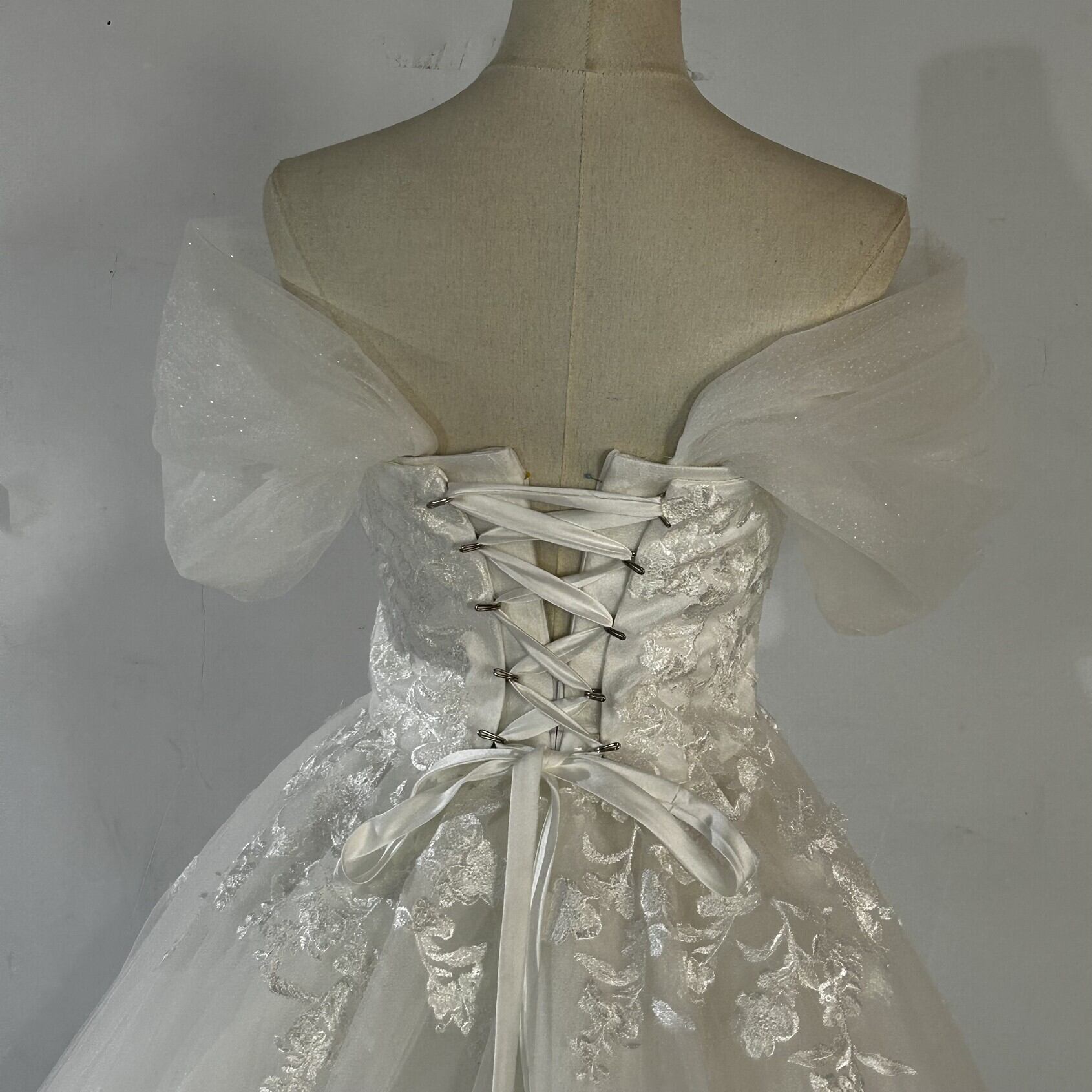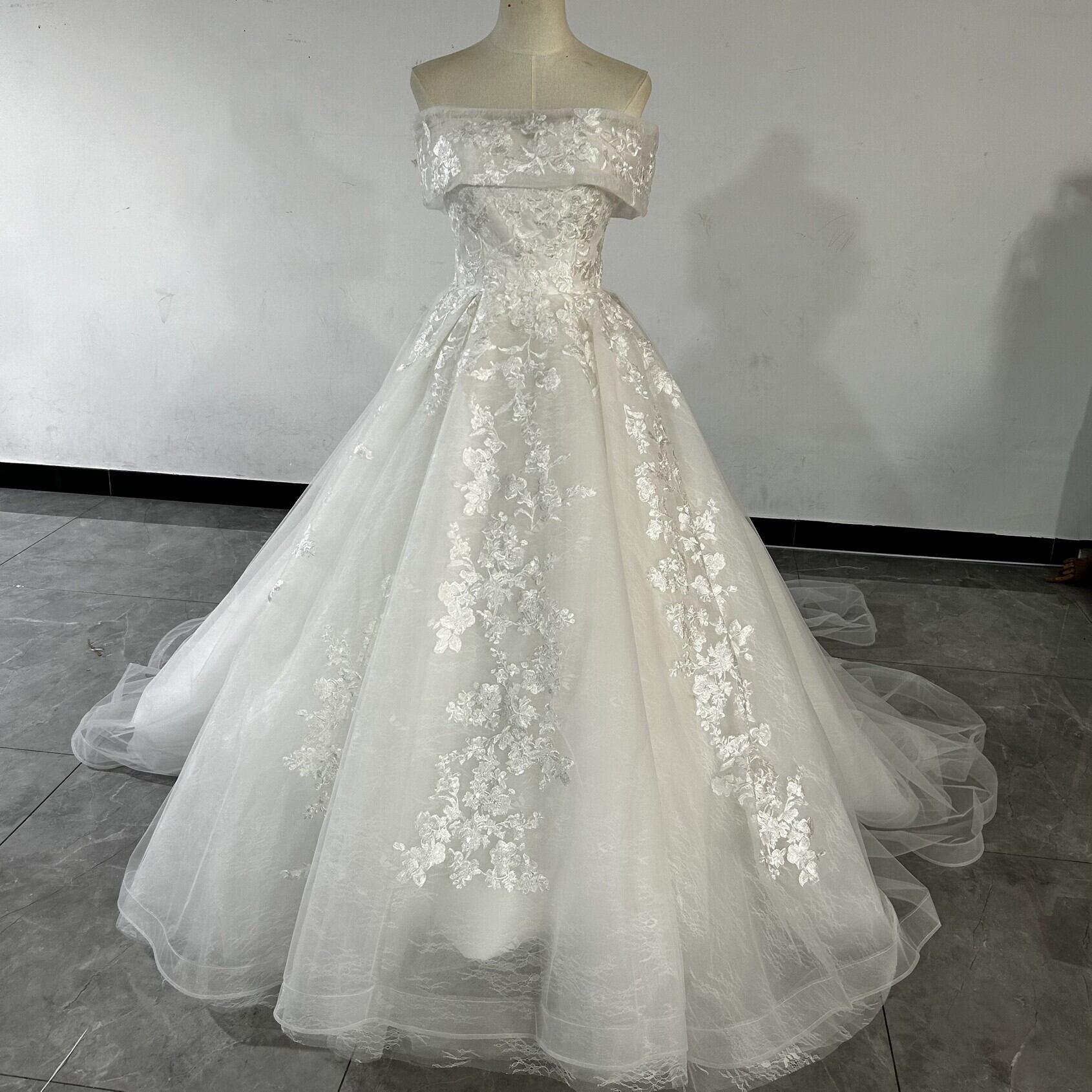 送料無料!人気上昇!3D立体レース刺繍 ウエディングドレス 取り外しオフショルダー  華やかなトレーン/結婚式/披露宴