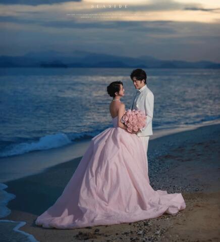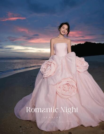 エレガント!パーティドレス カラードレス ピンク ビスチェドレス ふっくら柔らかな花リボン トレーン プリンセスライン 優雅 前撮り 結婚式