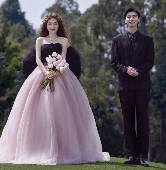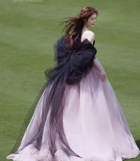 送料無料!パーティドレス カラードレス コントラスト色 ふっくら柔らかなバックリボン ロング プリンセスライン 前撮り パーティ/結婚式