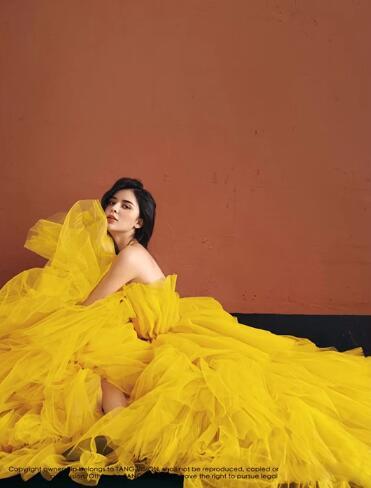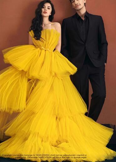 上品!パーティドレス カラードレス イエロー/黄色い ビスチェドレス フロントスリット 柔らかく重ねたチュールスカート ロング 前撮り パーティ/結婚式 | David1021k Dress(ダヴィドレス)