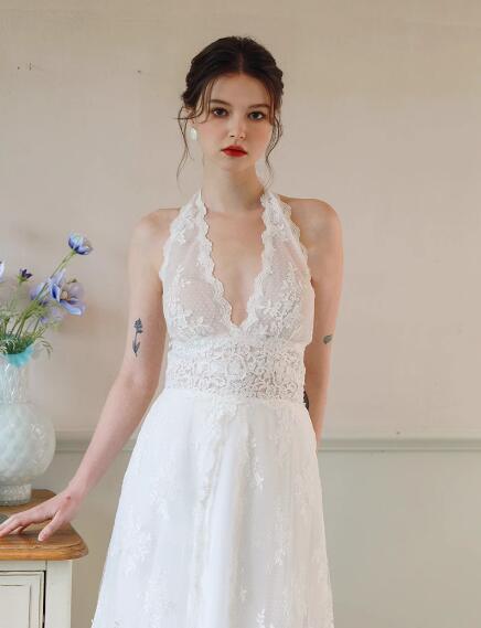 エレガント!パーティドレス Vネックドレス キャミソール 柔らかく重ねたチュールスカート 上品レース 総レース トレーン 前撮り パーティ/結婚式 | David1021k Dress(ダヴィドレス)