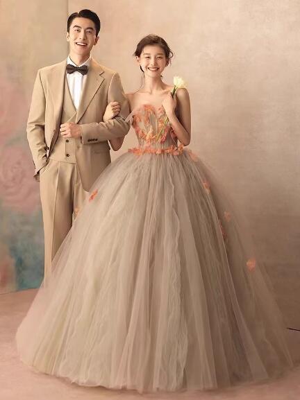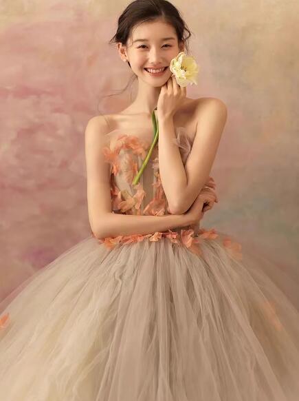 豪華!パーティドレス カラードレス ボリューム 花リボン プリンセスライン ビスチェドレス 柔らかく重ねたチュールスカート 上品レース ロング 爽やかで優しいブルー 前撮り パーティ/結婚式 | David1021k Dress(ダヴィドレス)