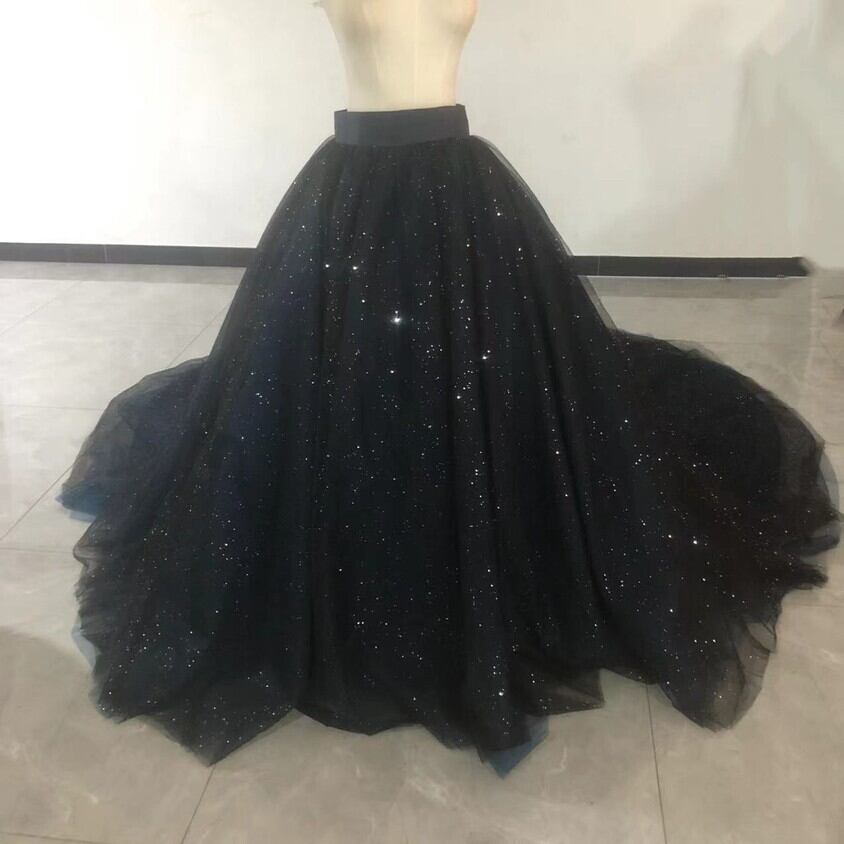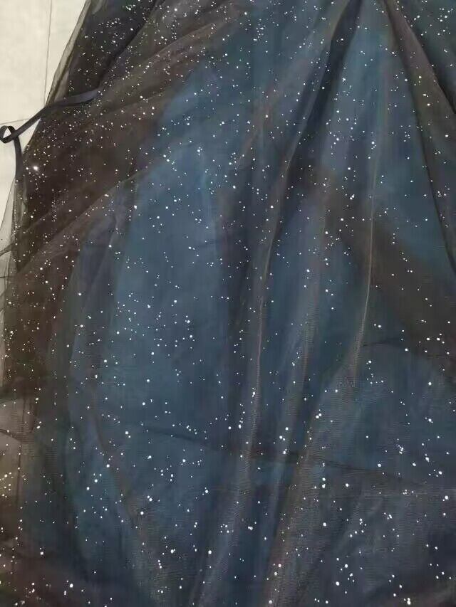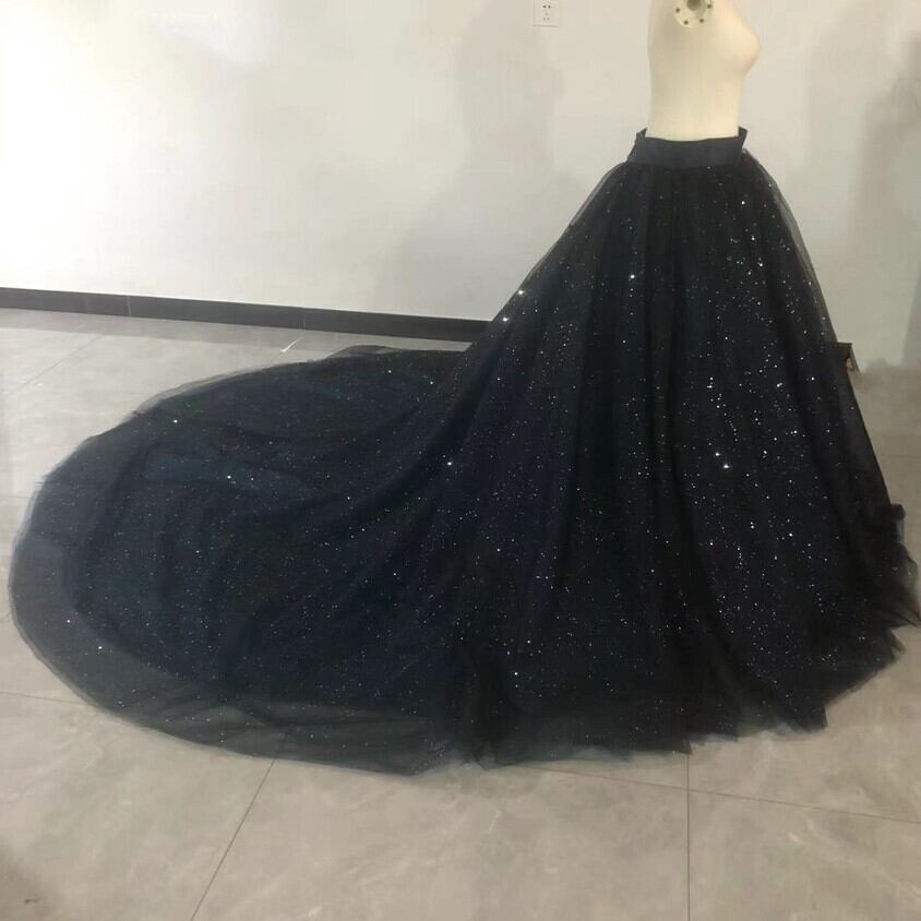 送料無料!美品!オーバースカート 黒 キラキラチュール 複数枚 紺 チュールスカート 星空 リボン ロングトレーン 結婚式/披露宴/パーティー