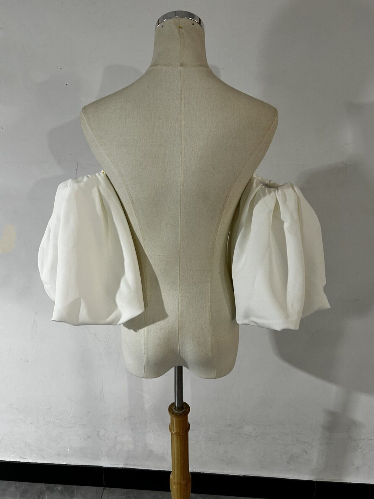 取り外し袖 ホワイト ショルダーの付け袖 三角形パフスリーブ ドレスアレンジ ウエディング お色直し クレープ生地