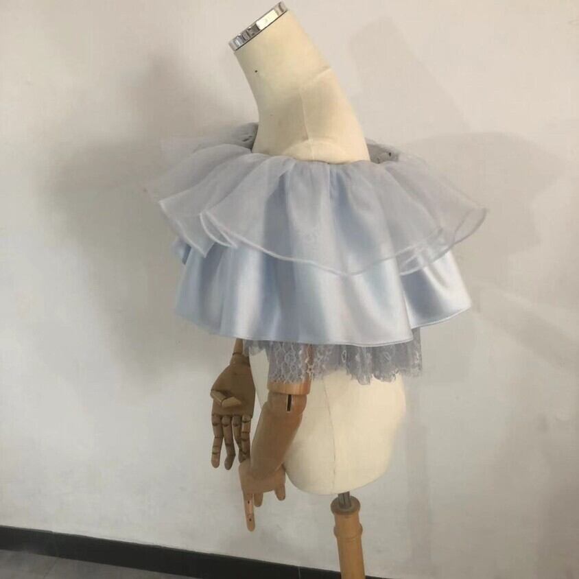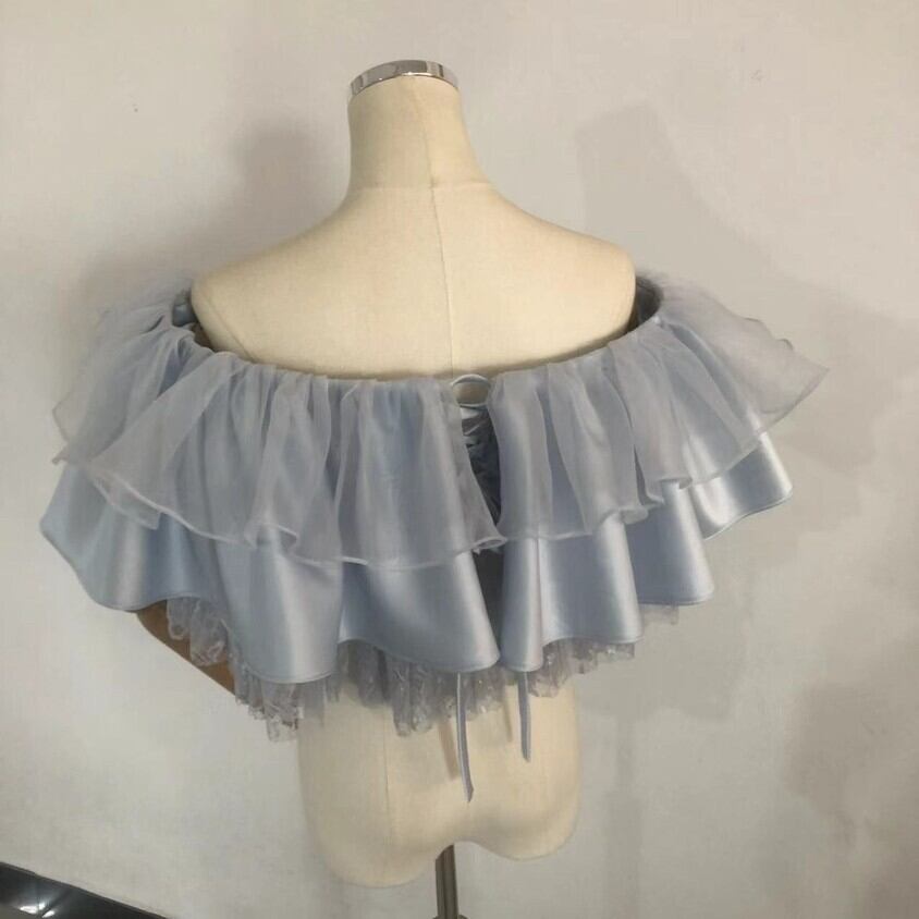 送料無料! グレー 多層生地 ポンチョ ソフトチュール ラッフルフリル  取り外しオフショルダー