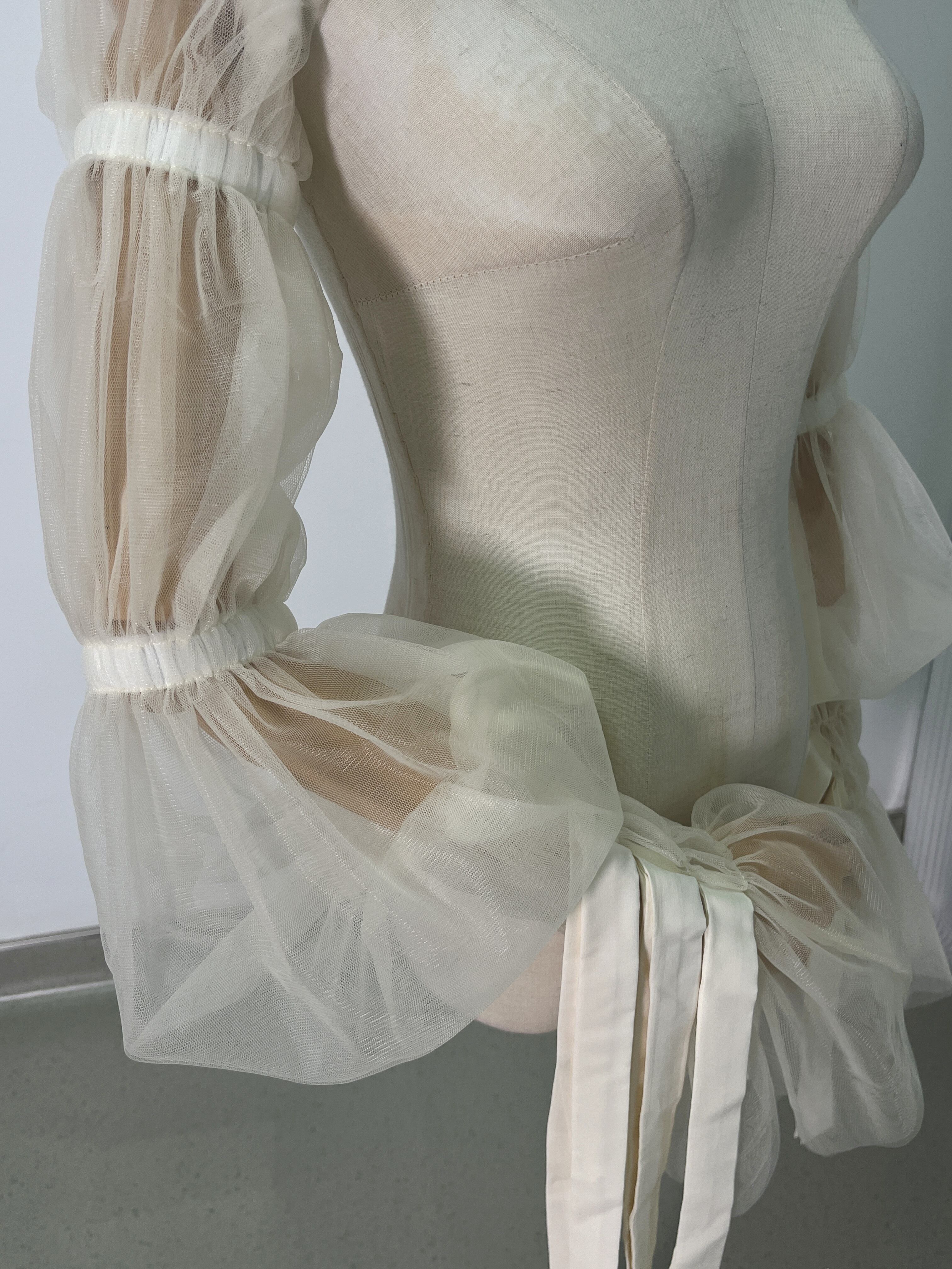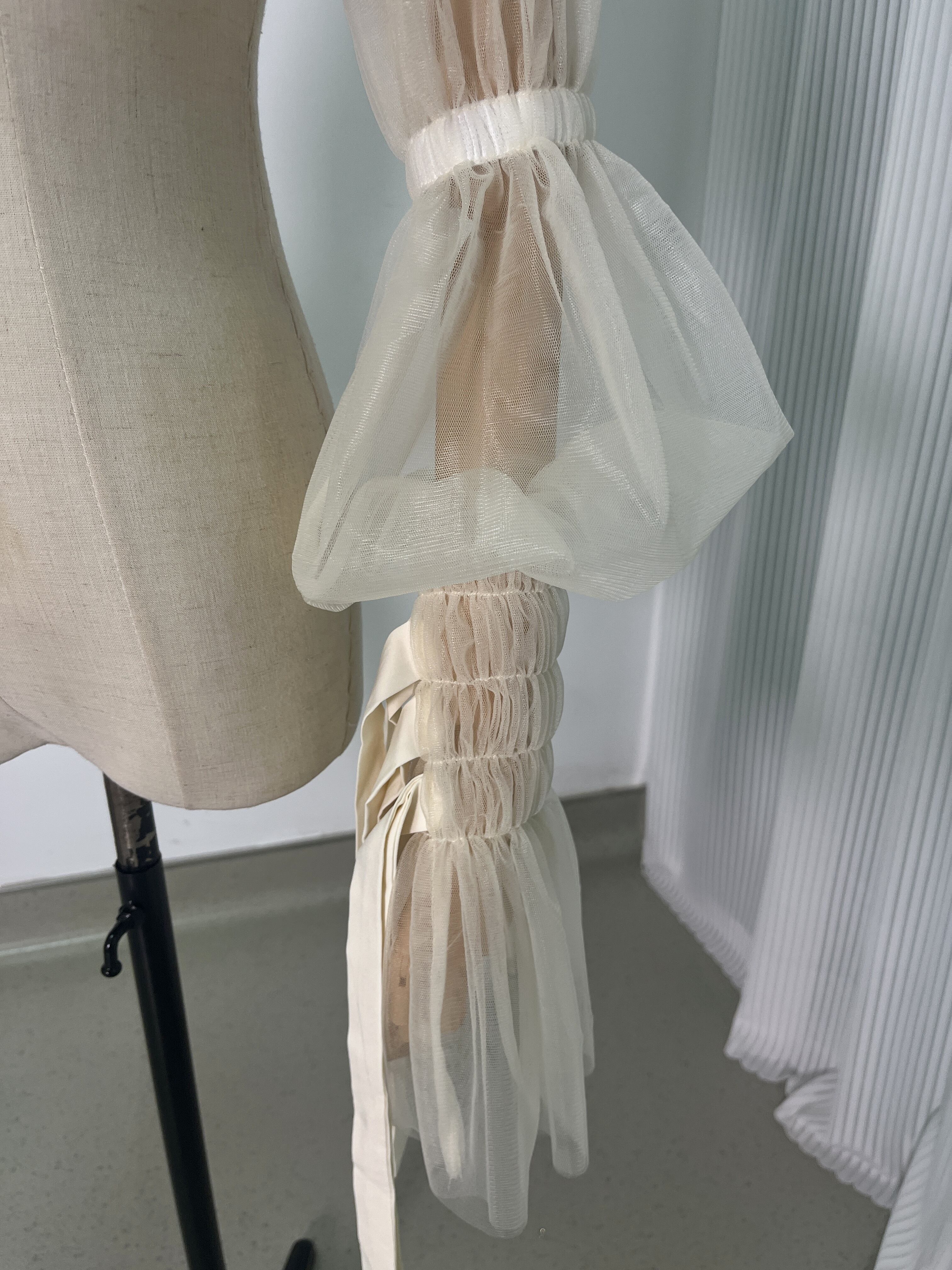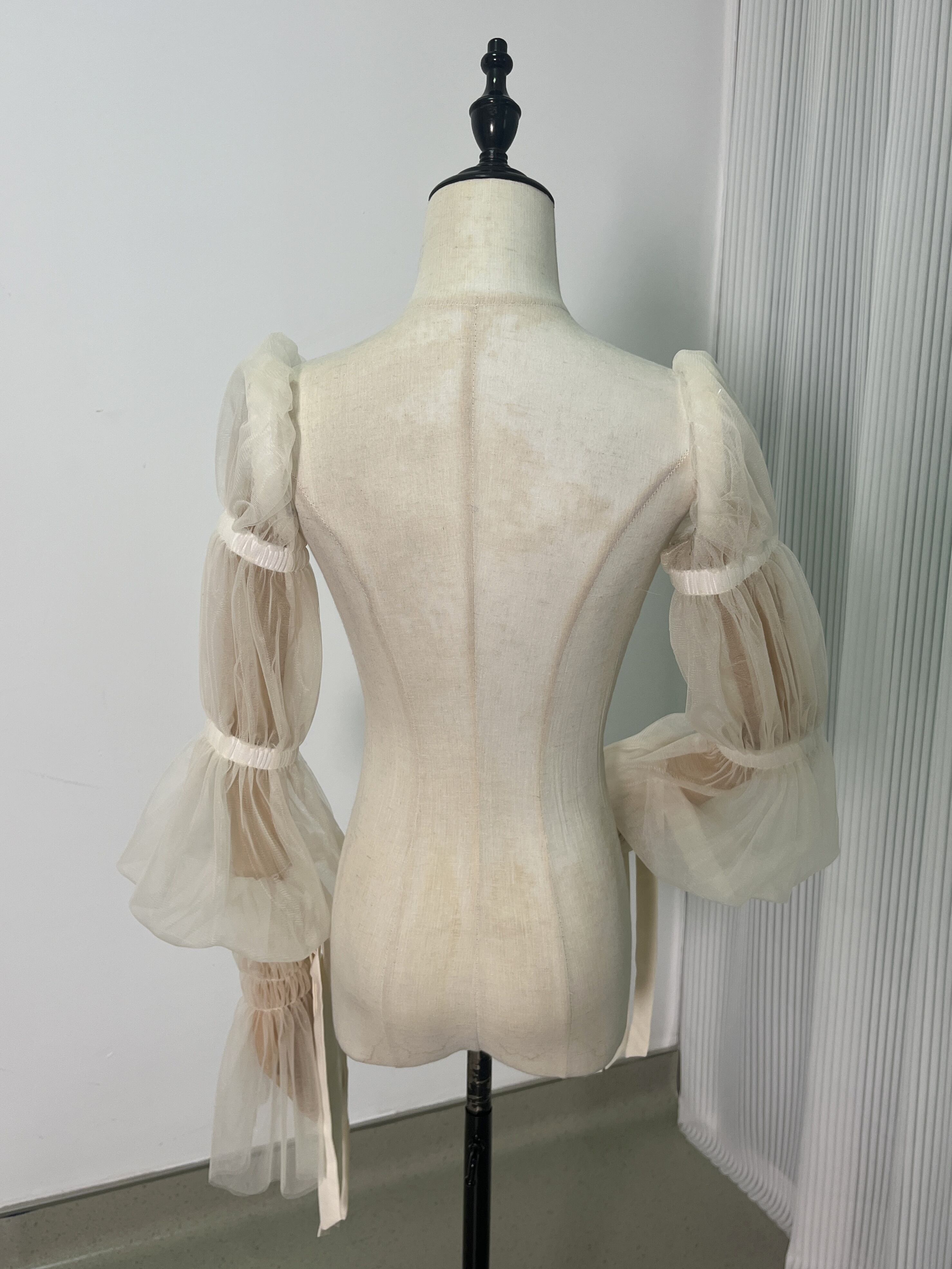 大人気上昇 アイボリー 長袖 ボブスリーブ 取り外し袖 ショルダーの付け袖 パフスリーブ オーダー可能 二の腕を隠せるお袖