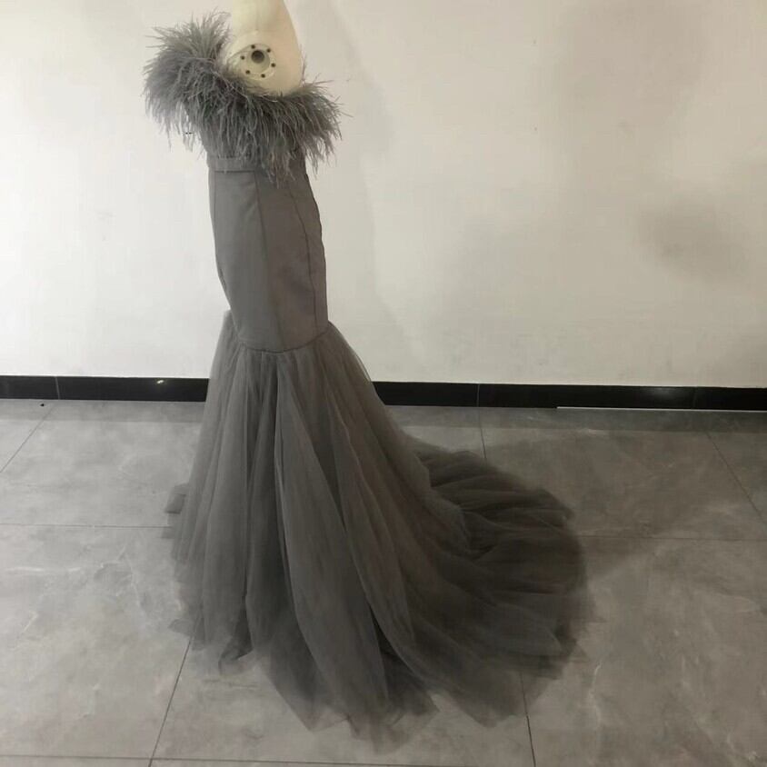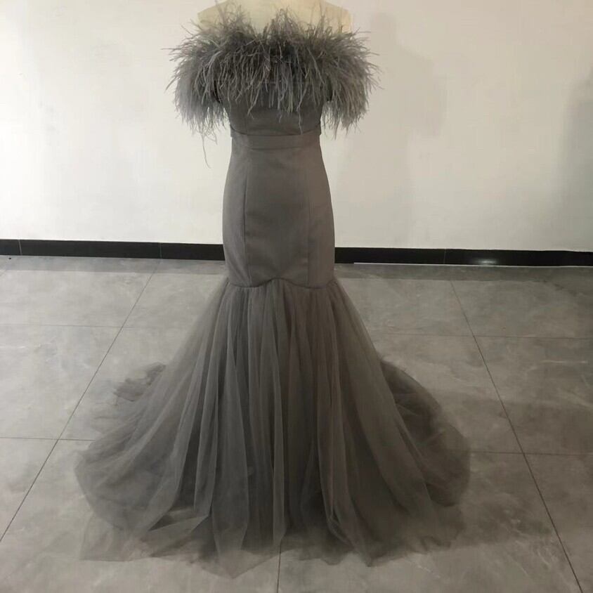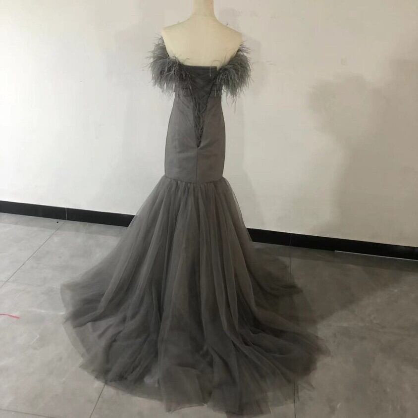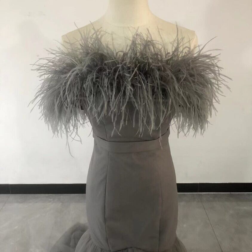 送料無料!人気上昇!アイボリー カラードレス 羽フェザーマーメイド パーティー /結婚式/披露宴