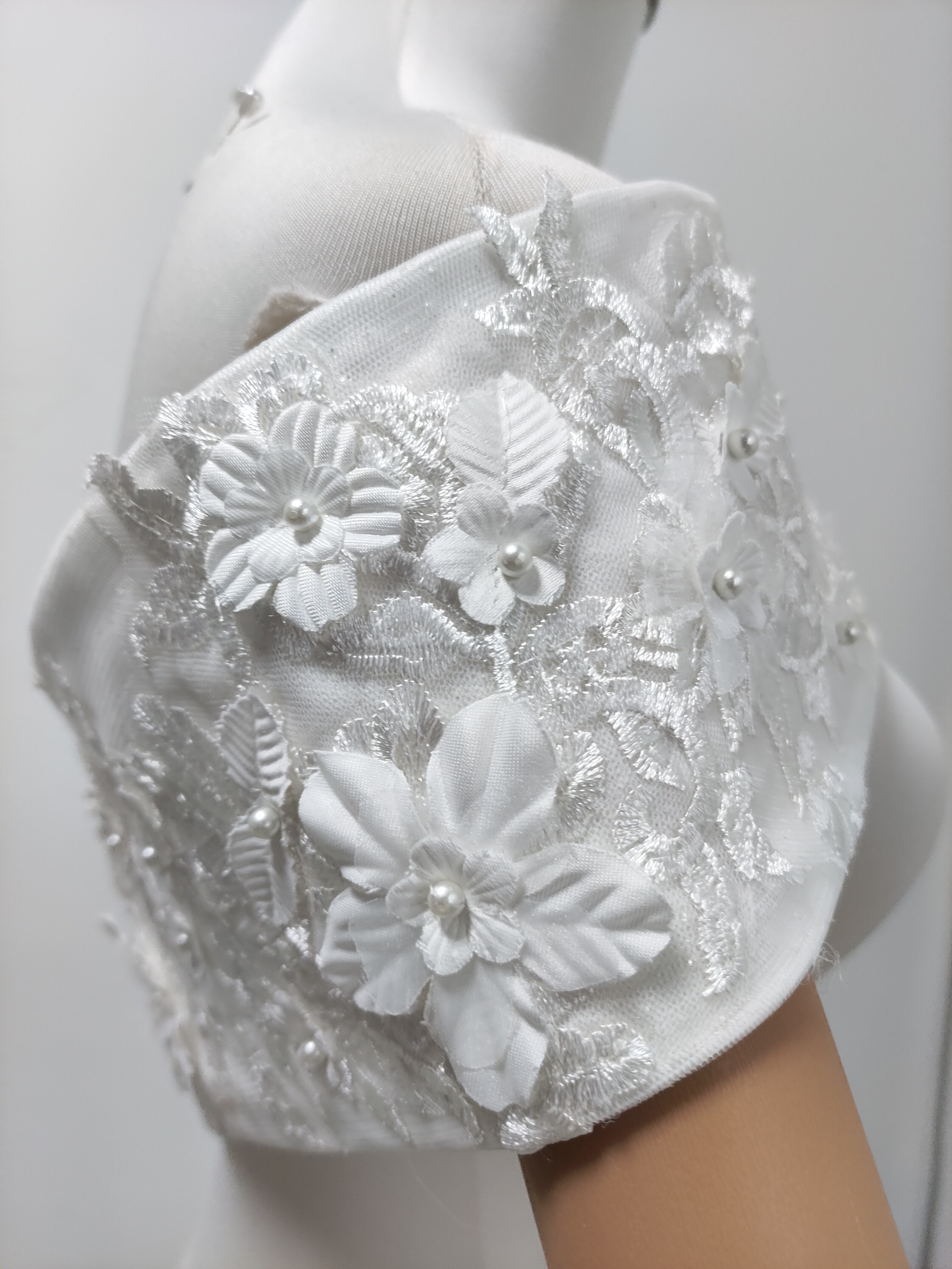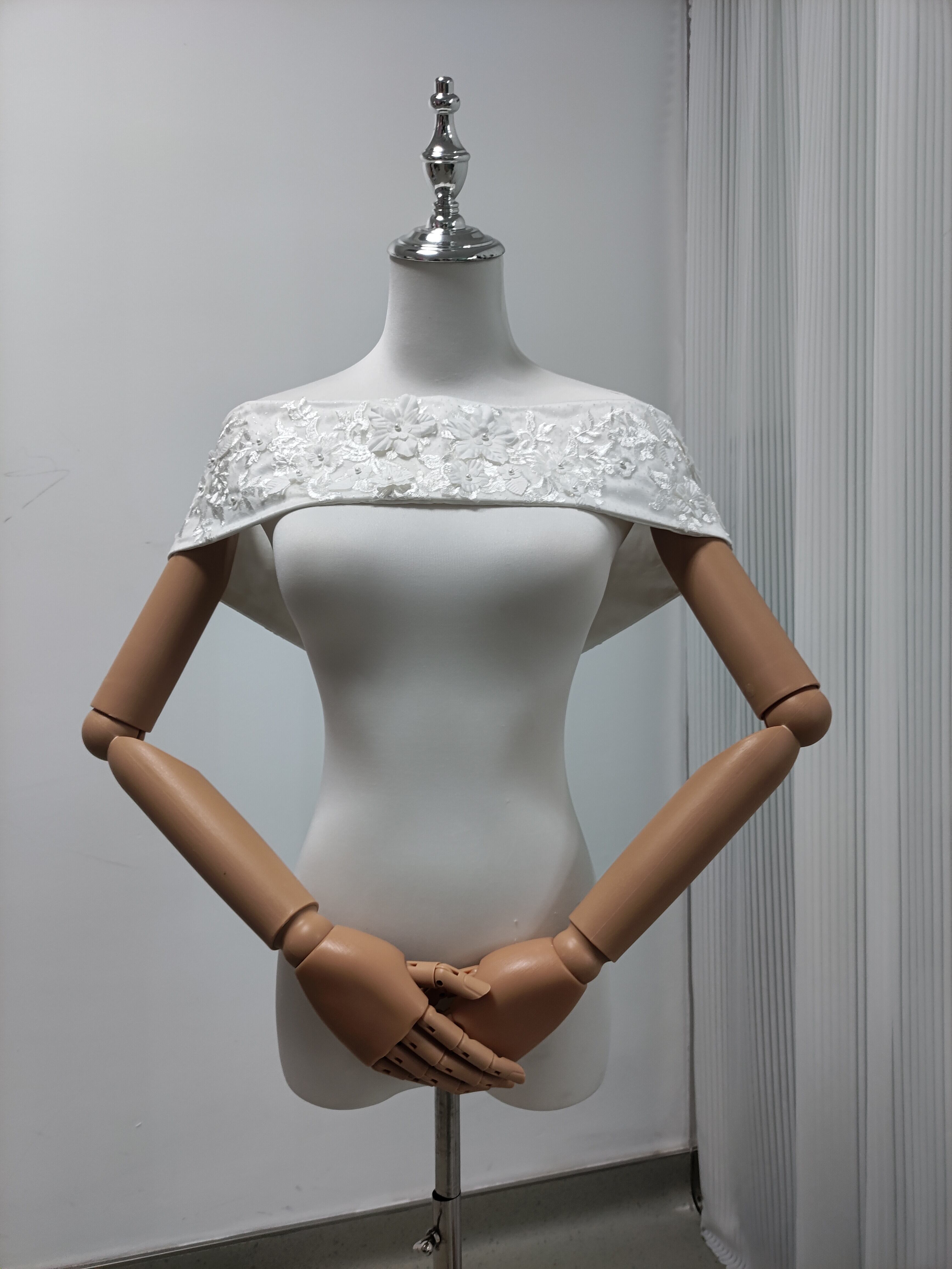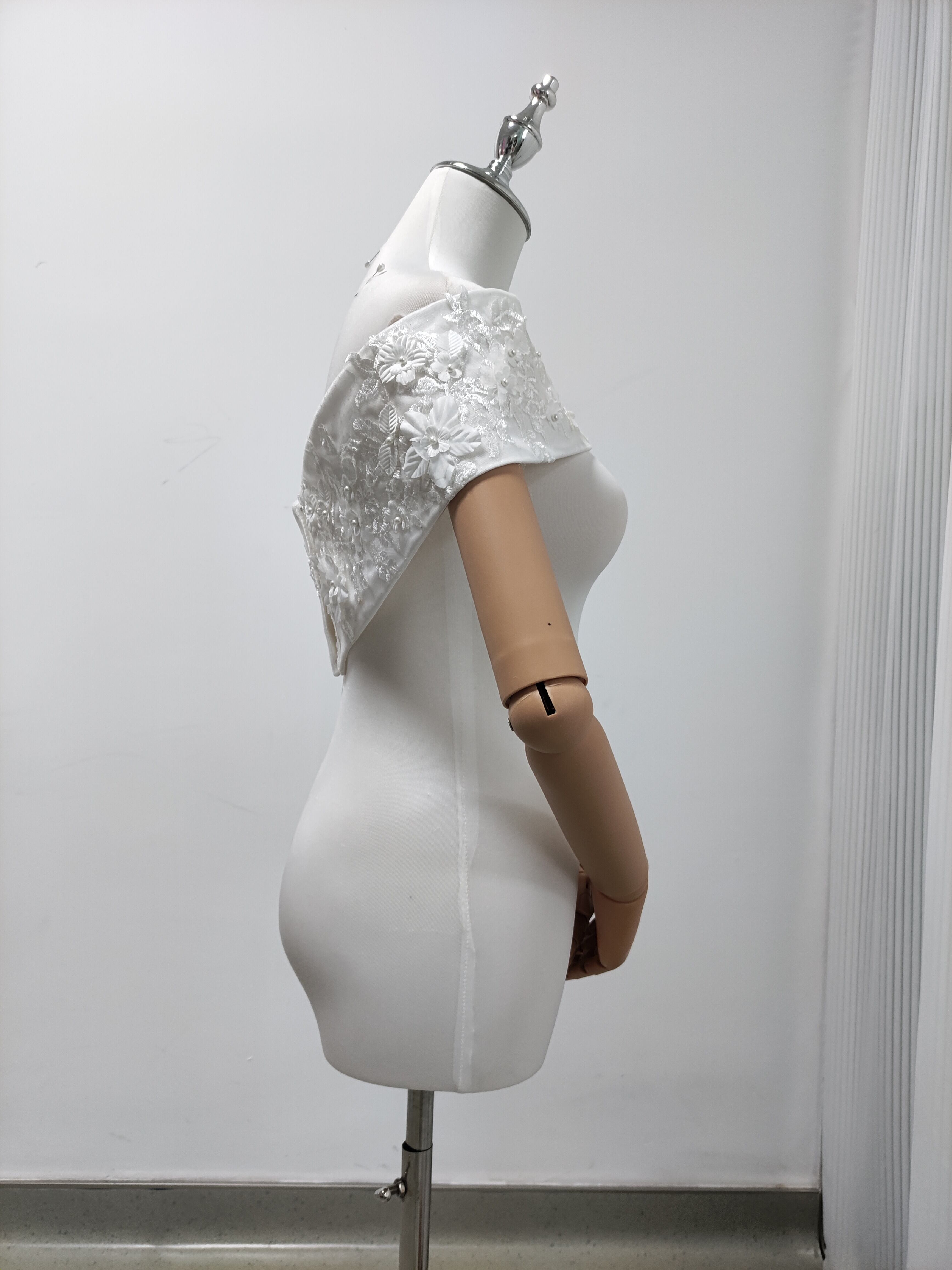送料無料!上品花レース パール オフショルダー 色直し サイズ調整可能 ドレスアレンジ お色直し ロールカラー