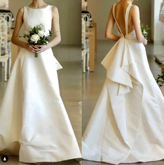 上品!トレーン/ロング(ご指定自由)!ウエディングドレス キャミソール ふっくら柔らかなバックリボン 背中見せ/バックレス 細見えシルエット 高級サテン 前撮り パーティー/披露宴/結婚式/花嫁/二次会 | David1021k Dress(ダヴィドレス)