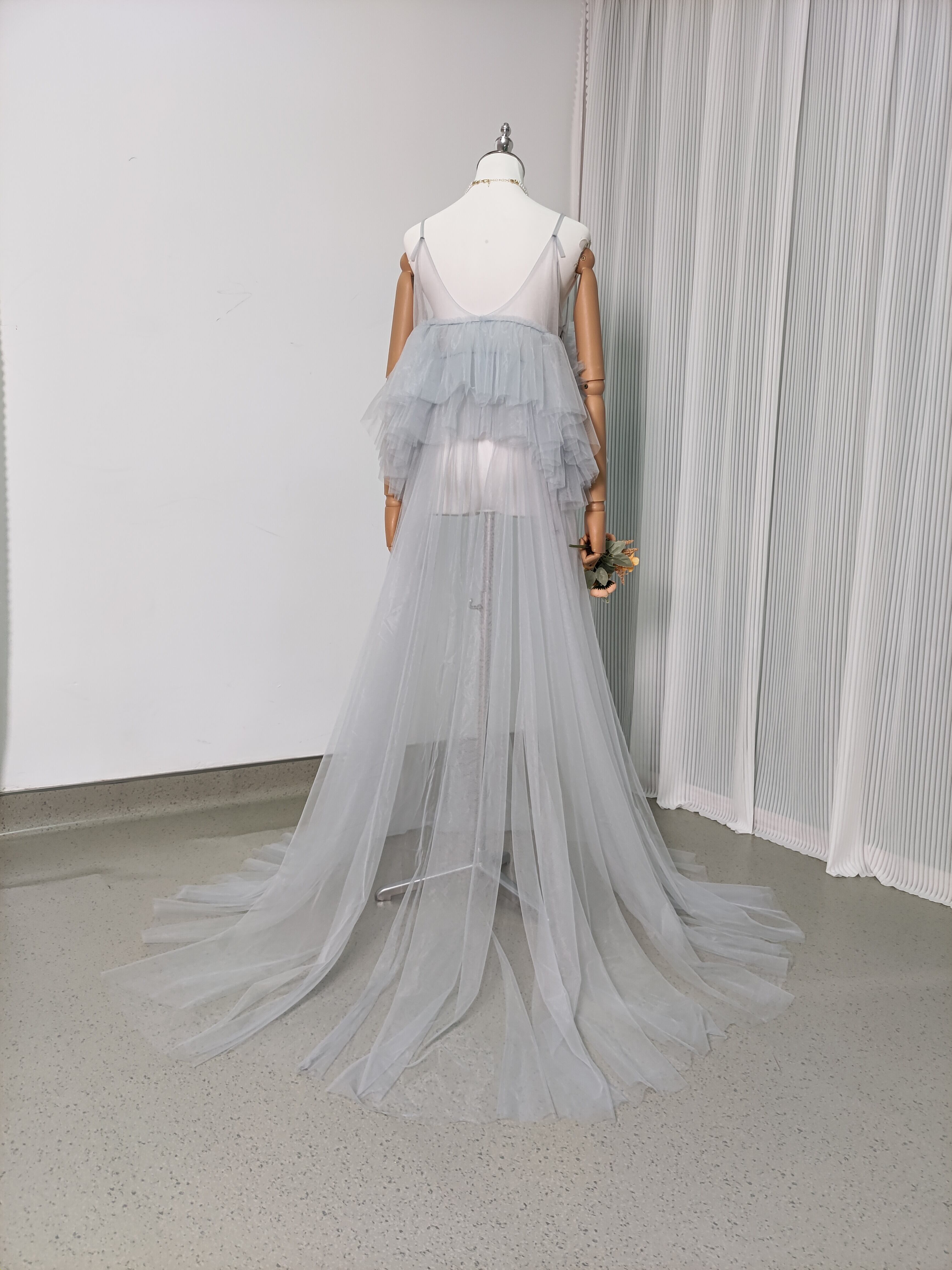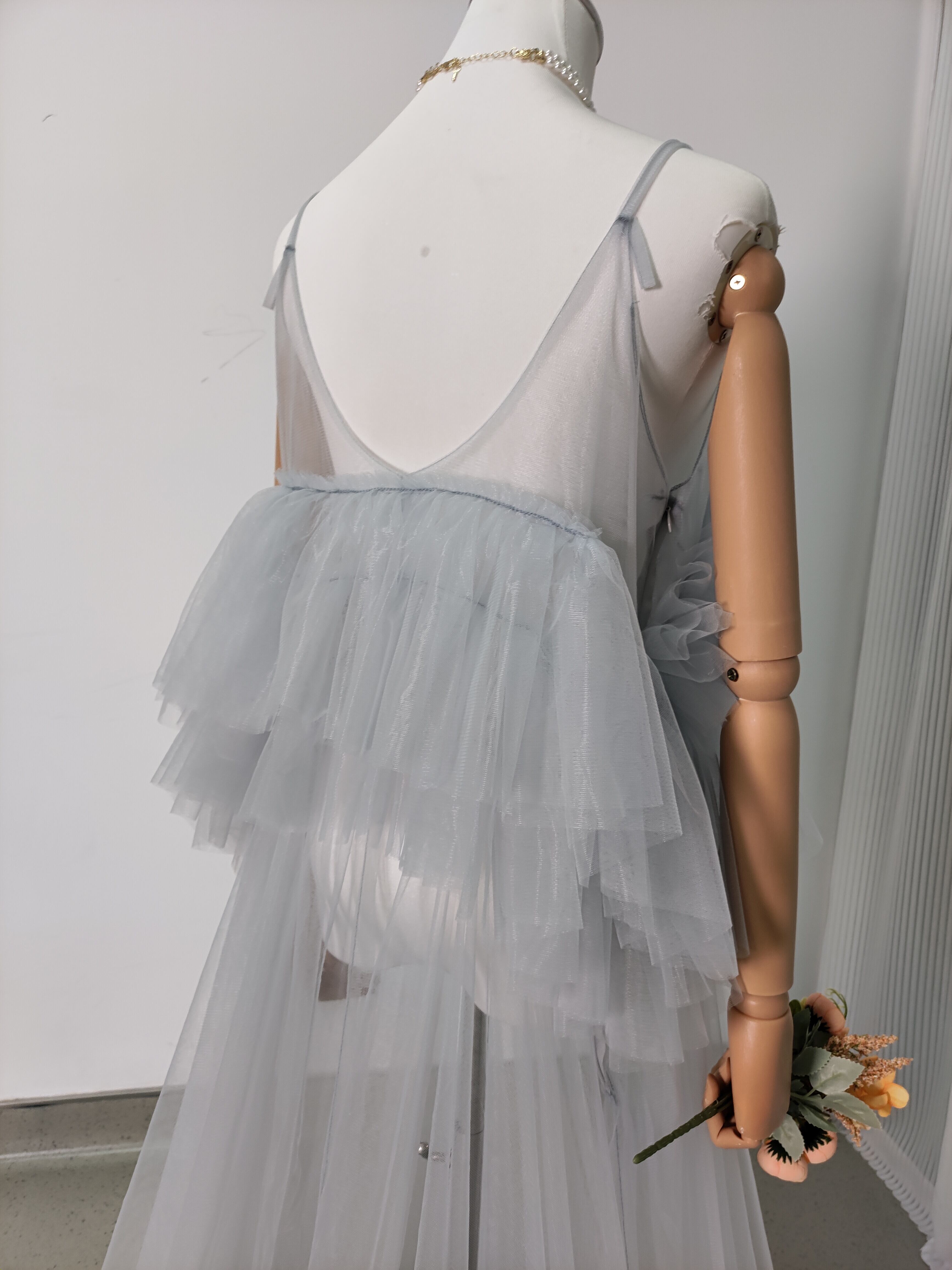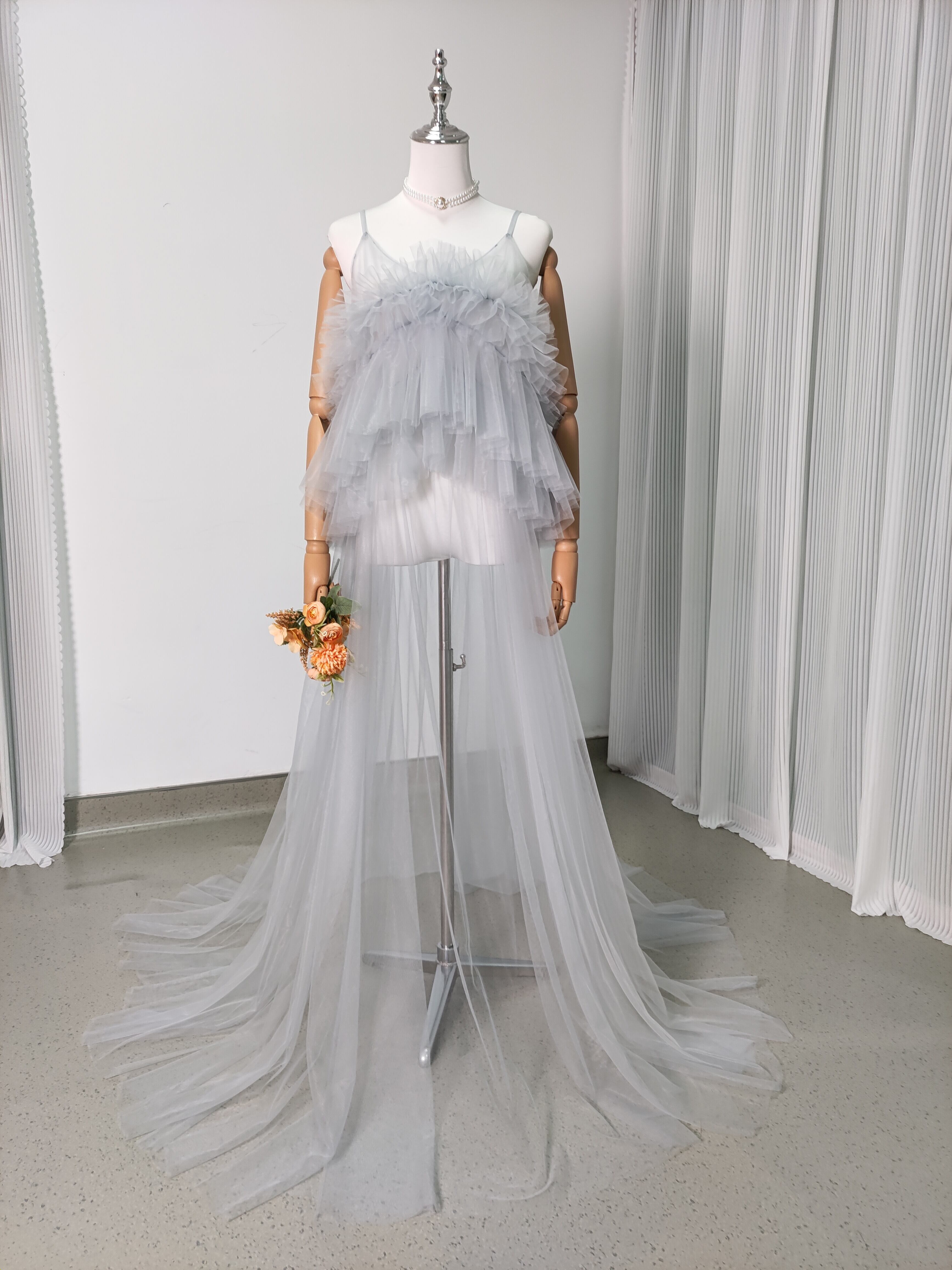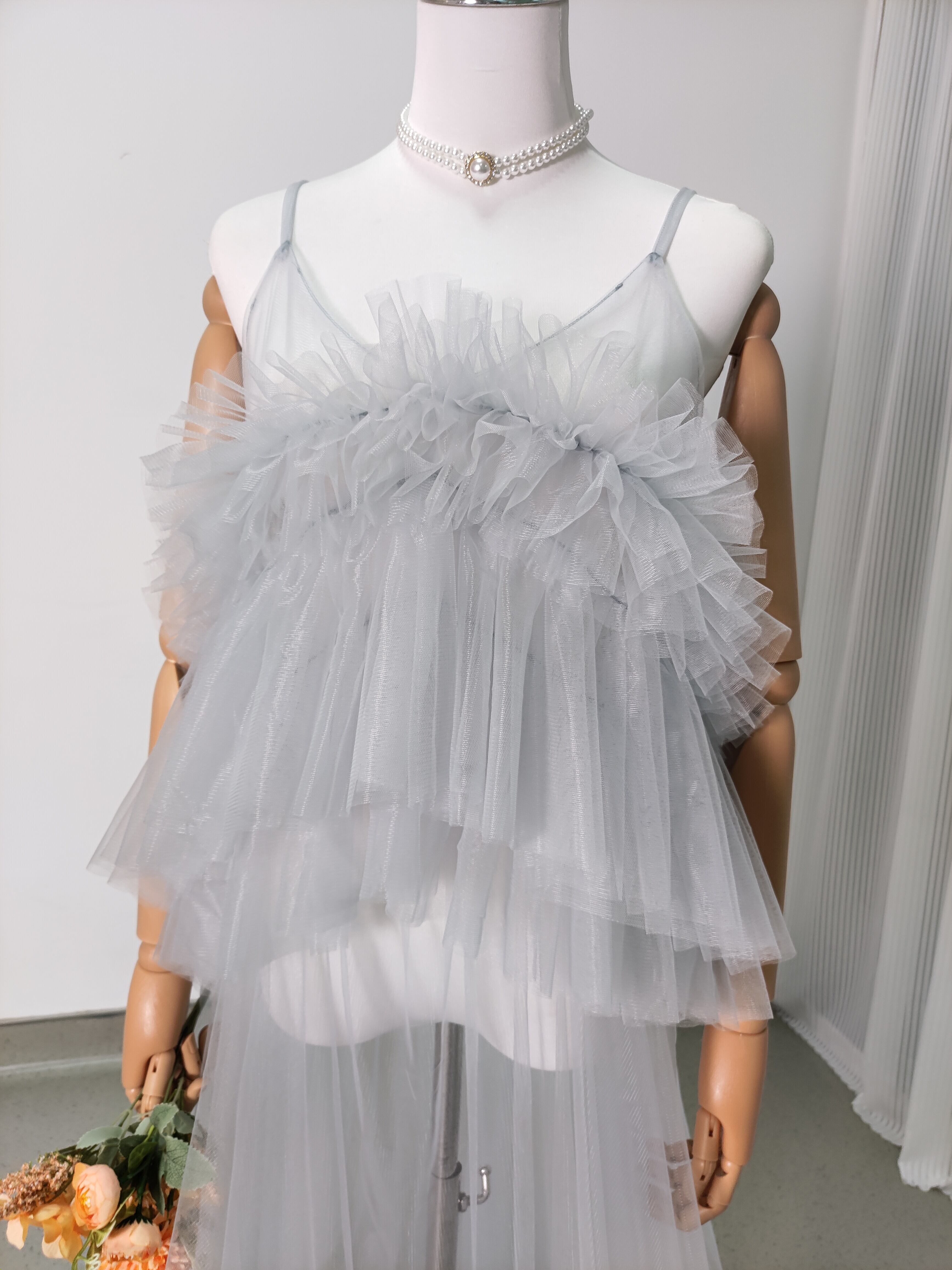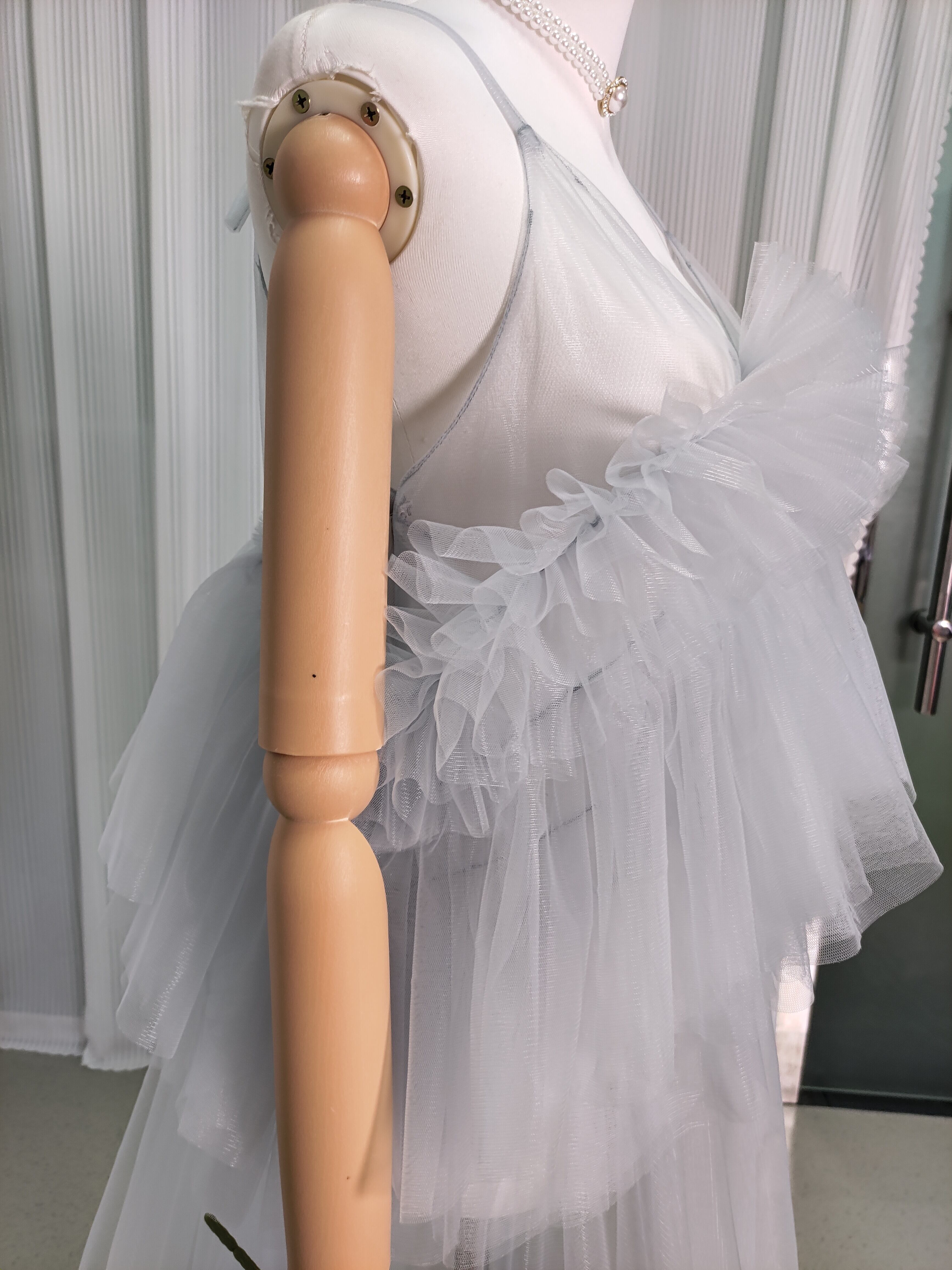 上品!ペールトーンのブルー ソフトチュールドレス カラードレスオーバースカートキャミソール /音楽会