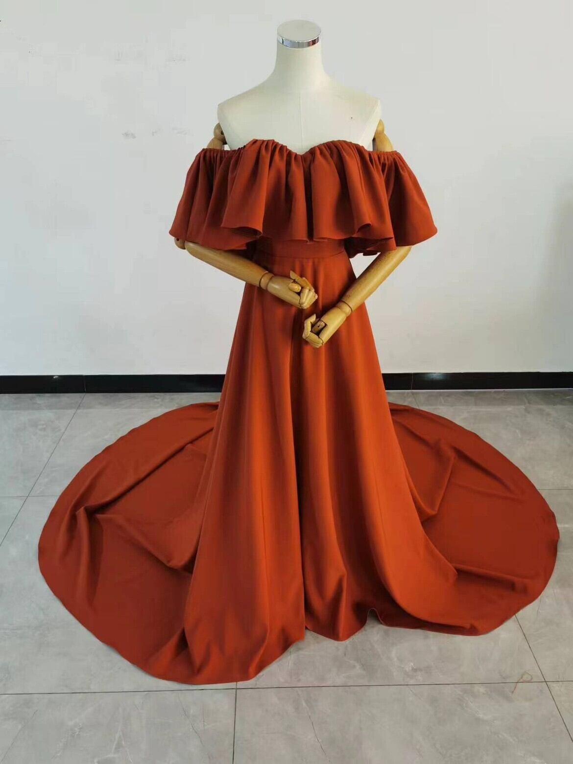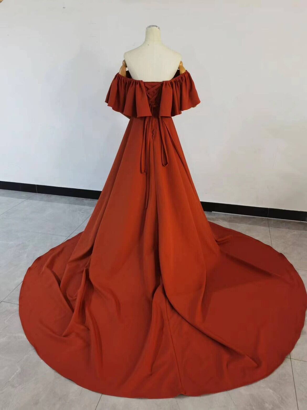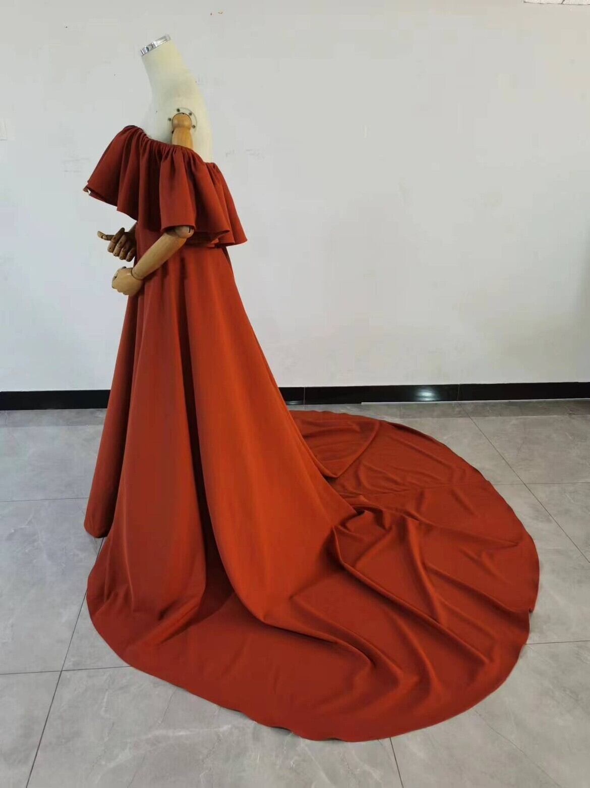 カラードレス テラコッタ色 オフショルダー ロングトレーン 前撮り