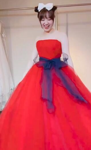 送料無料!パーティドレス ビスチェドレス コントラスト色 赤/レッド リボン 背中見せ 色変更可能 前撮り トレーン/ロング(ご指定自由)!パーティー/披露宴/結婚式/花嫁/二次会 | David1021k Dress(ダヴィドレス)