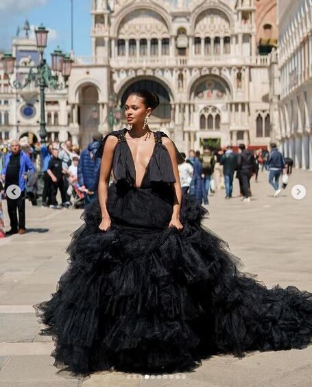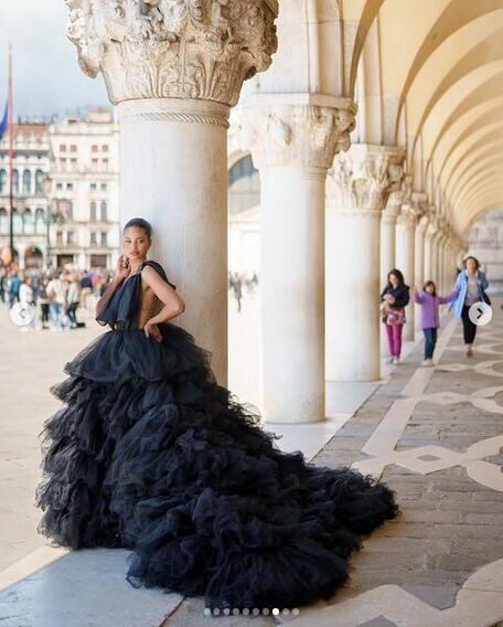 上品!カラードレス 黒 キャミソール フリル ソフトチュール ボリューム感満点 トレーン/ロング(ご指定自由)!前撮り パーティー/披露宴/結婚式/花嫁/二次会
