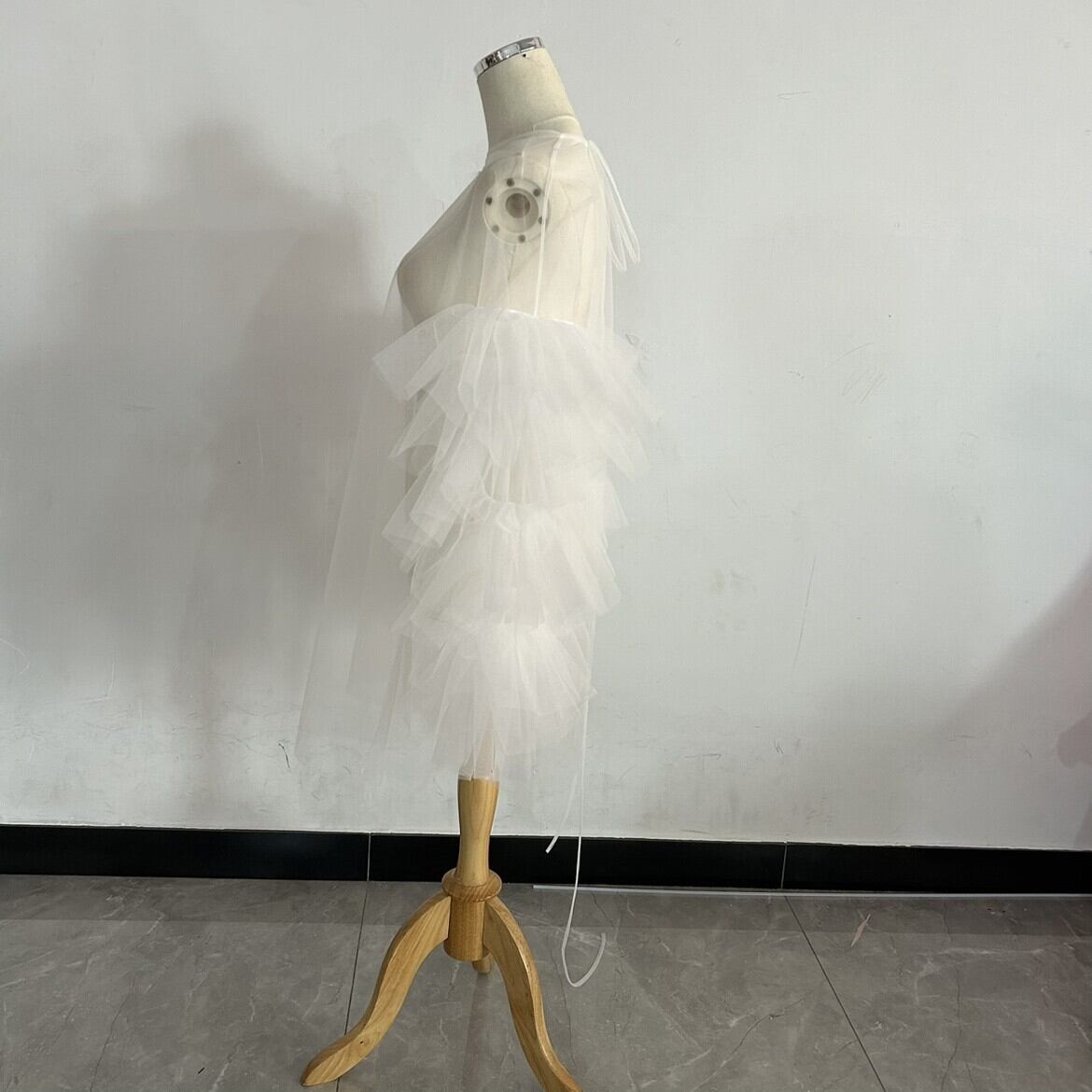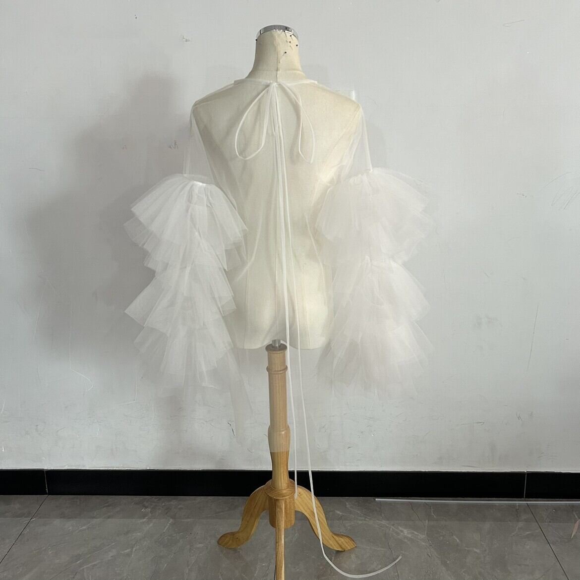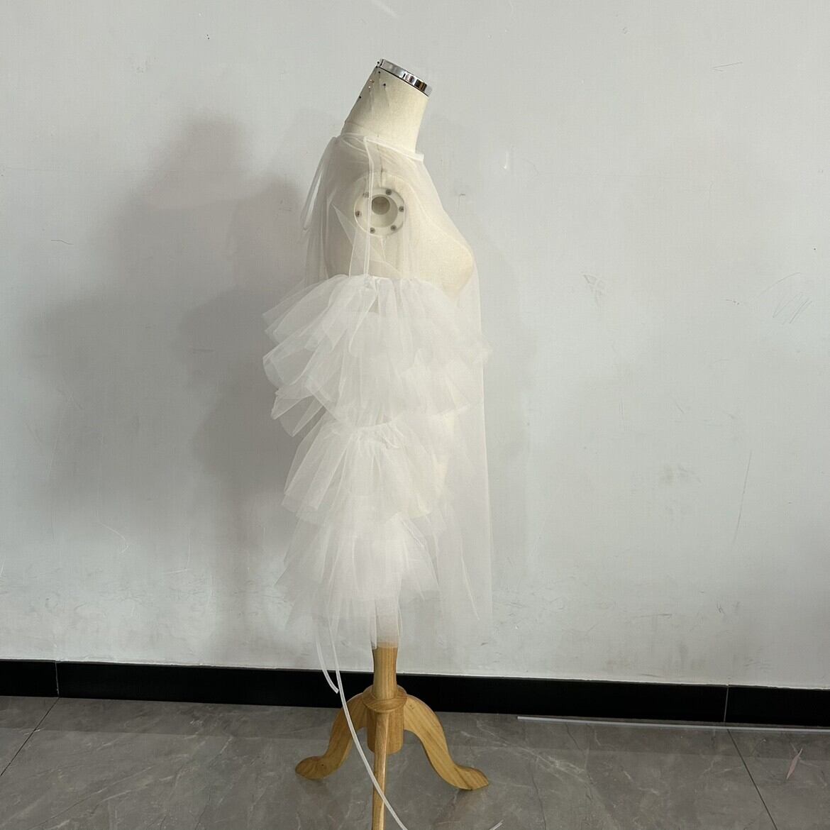 送料無料! 抜群のおしゃれ見えカーディガン(ボレロ) オフホワイトソフトチュール ラッフルフリル 長袖 演奏会/音楽会