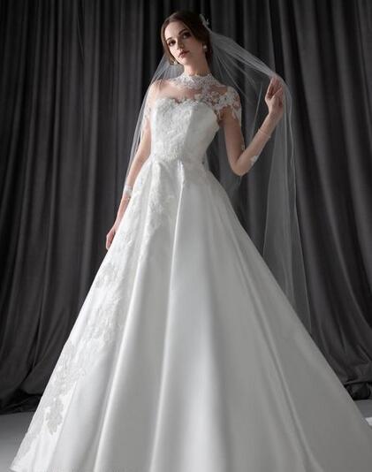 高品質!ウエディングドレス ビスチェドレス 上品レース 胸元ハートカート 高級サテン トレーン/ロング(ご指定自由)!前撮り パーティー/披露宴/結婚式/花嫁/二次会 | David1021k Dress(ダヴィドレス)