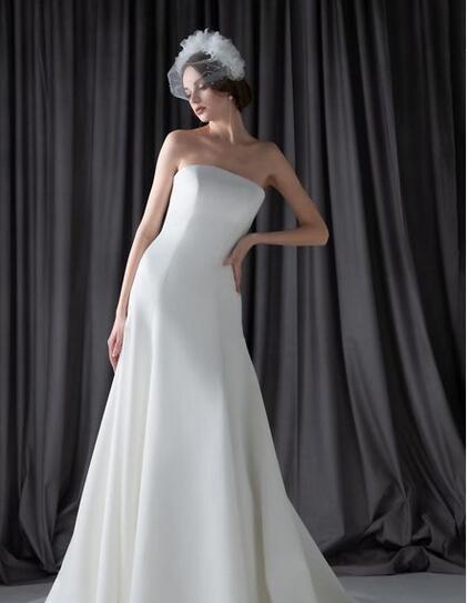高品質!ウエディングドレス パフスリープ 優雅なシルエット 取り外し可能 ビスチェドレス 背中見せ/バックレス 高級サテン トレーン/ロング(ご指定自由)!前撮り パーティー/披露宴/結婚式/花嫁/二次会 | David1021k Dress(ダヴィドレス)