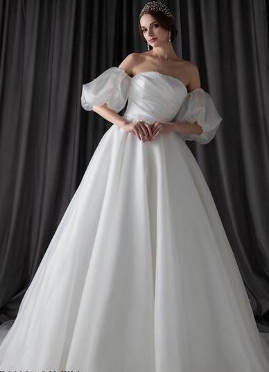 高品質!ウエディングドレス 取り外し可能 パフスリープ バックトレーン ビスチェドレス 優雅なシルエット 背中見せ/バックレス 高級サテン トレーン/ロング(ご指定自由)!前撮り パーティー/披露宴/結婚式/花嫁/二次会 | David1021k Dress(ダヴィドレス)
