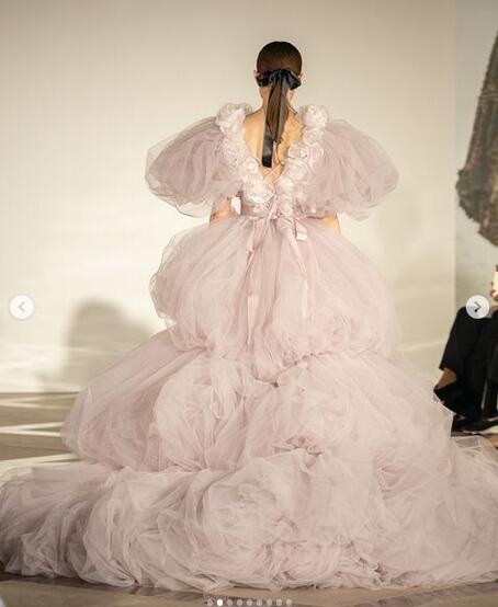 送料無料!パーティドレス カラードレス 背中見せ/バックレス 花リボンドレス パフスリープ ボリューム感満点 トレーン/ロング(ご指定自由)!前撮り パーティー/披露宴/結婚式/花嫁/二次会