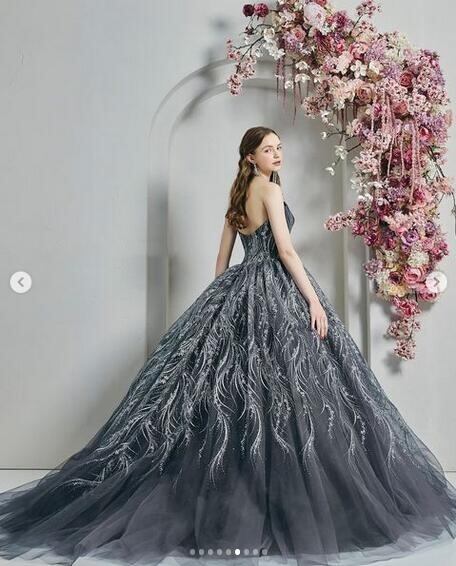 上品!ウエディングドレス カラードレス 黒 ビスチェドレス リボン ソフトチュール 柔らかく重ねたチュールスカート プリンセスライン ビスチェドレス トレーン/ロング(ご指定自由)!前撮り パーティー/披露宴/結婚式/花嫁/二次会 | David1021k Dress(ダヴィドレス)
