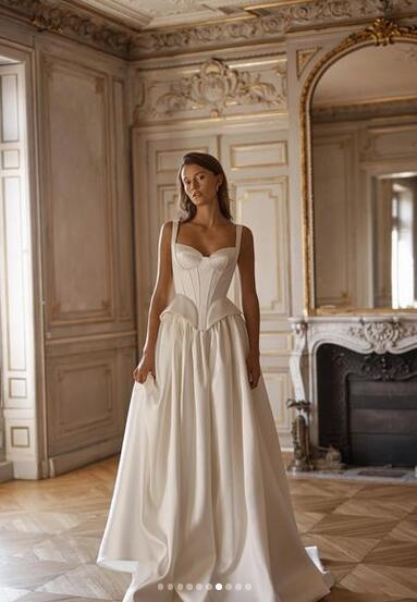 送料無料!パーティドレス キャミソール ハートカット 背中見せ/バックレス 優雅なシルエット 編み上げ式 高級サテン セクシー トレーン/ロング(ご指定自由)!前撮り パーティー/披露宴/結婚式/花嫁/二次会 | David1021k Dress(ダヴィドレス)