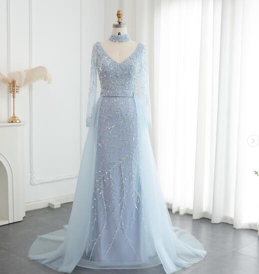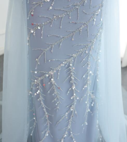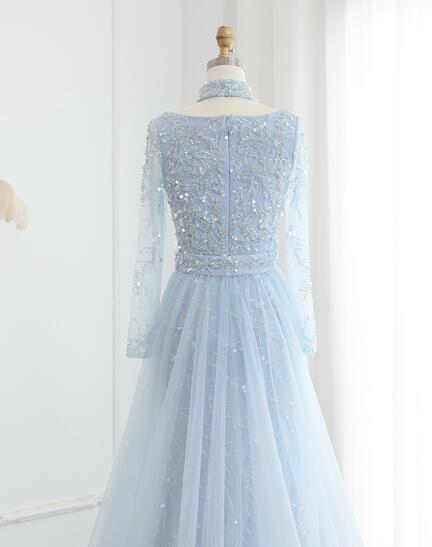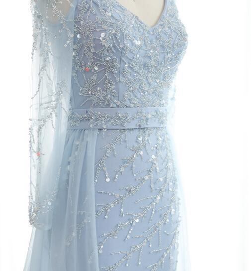 高品質!カラードレス パーティドレス 爽やかで優しいブルー キラキラ ソフトチュール Vネック 可愛い 優雅なシルエット かわいい トレーン/ロング(ご指定自由)!前撮り パーティー/披露宴/結婚式/花嫁/二次会 | David1021k Dress(ダヴィドレス)