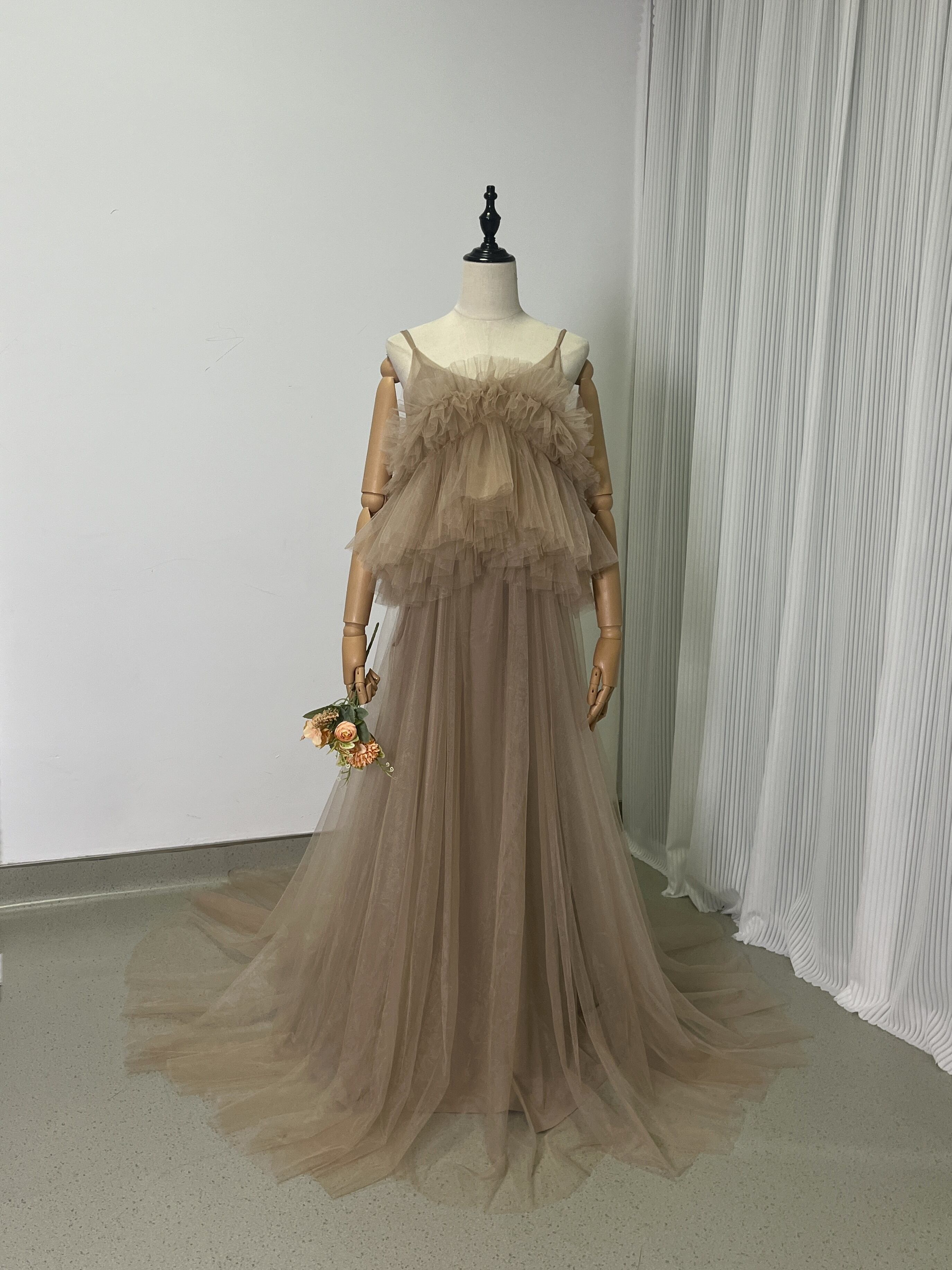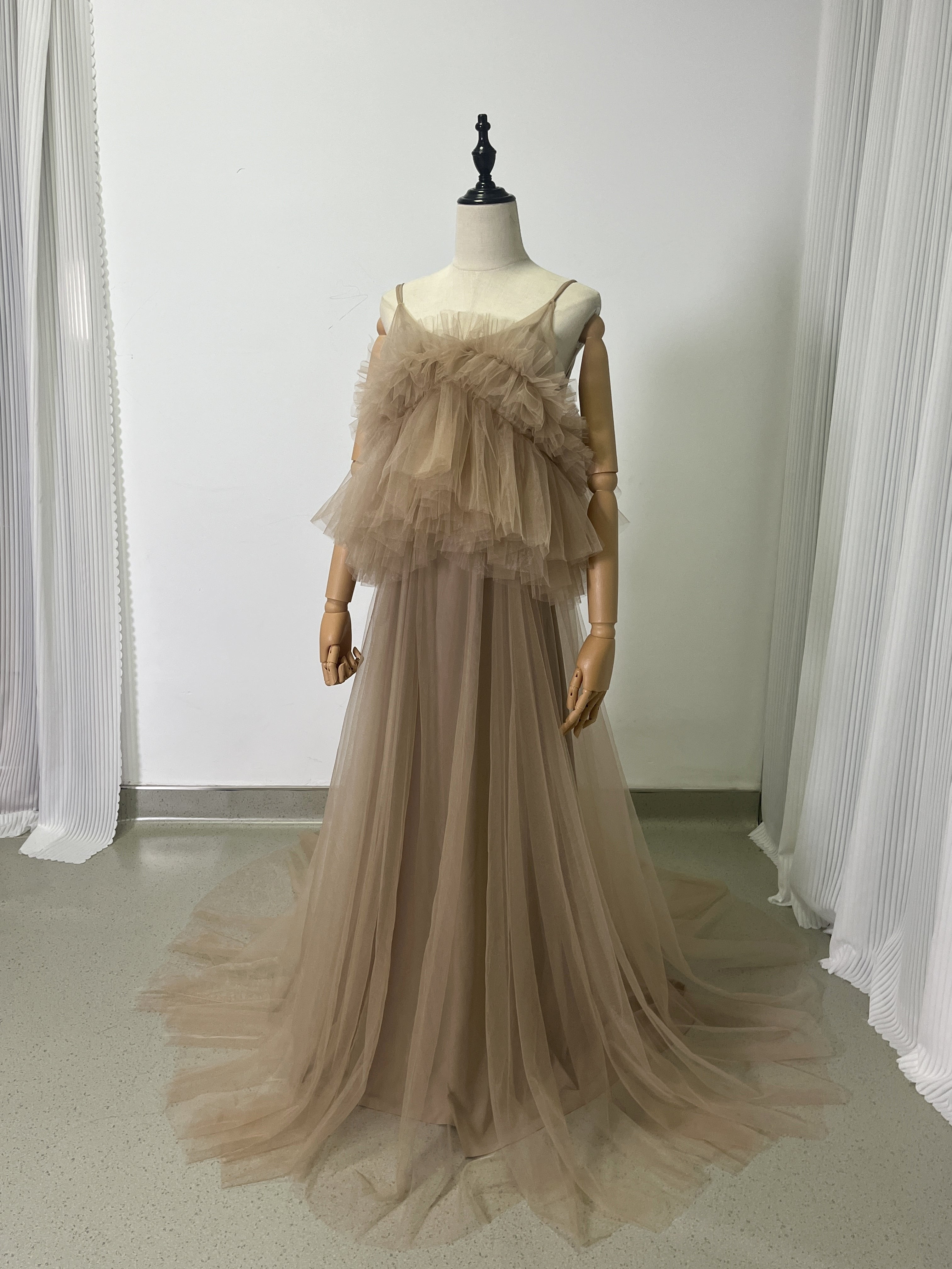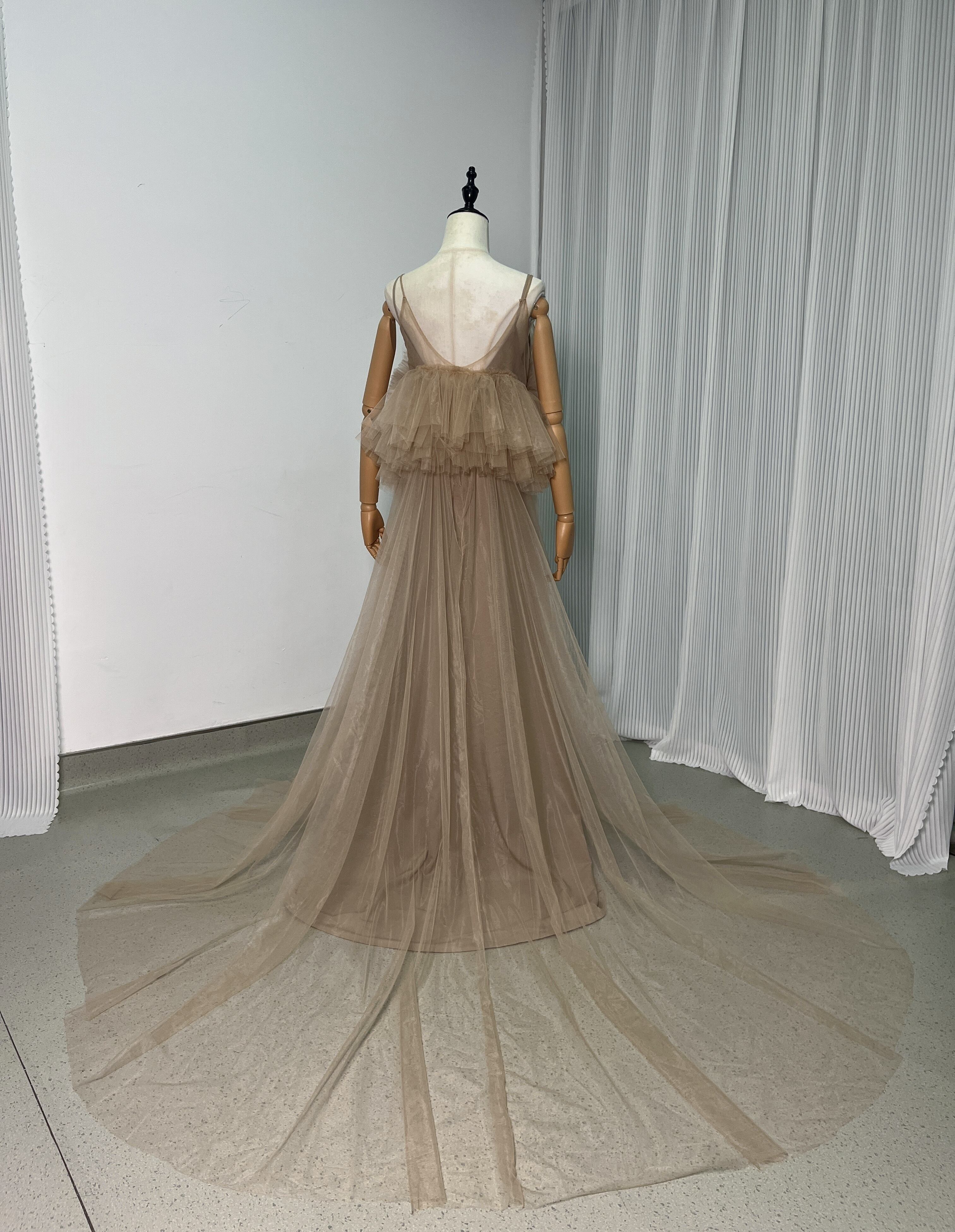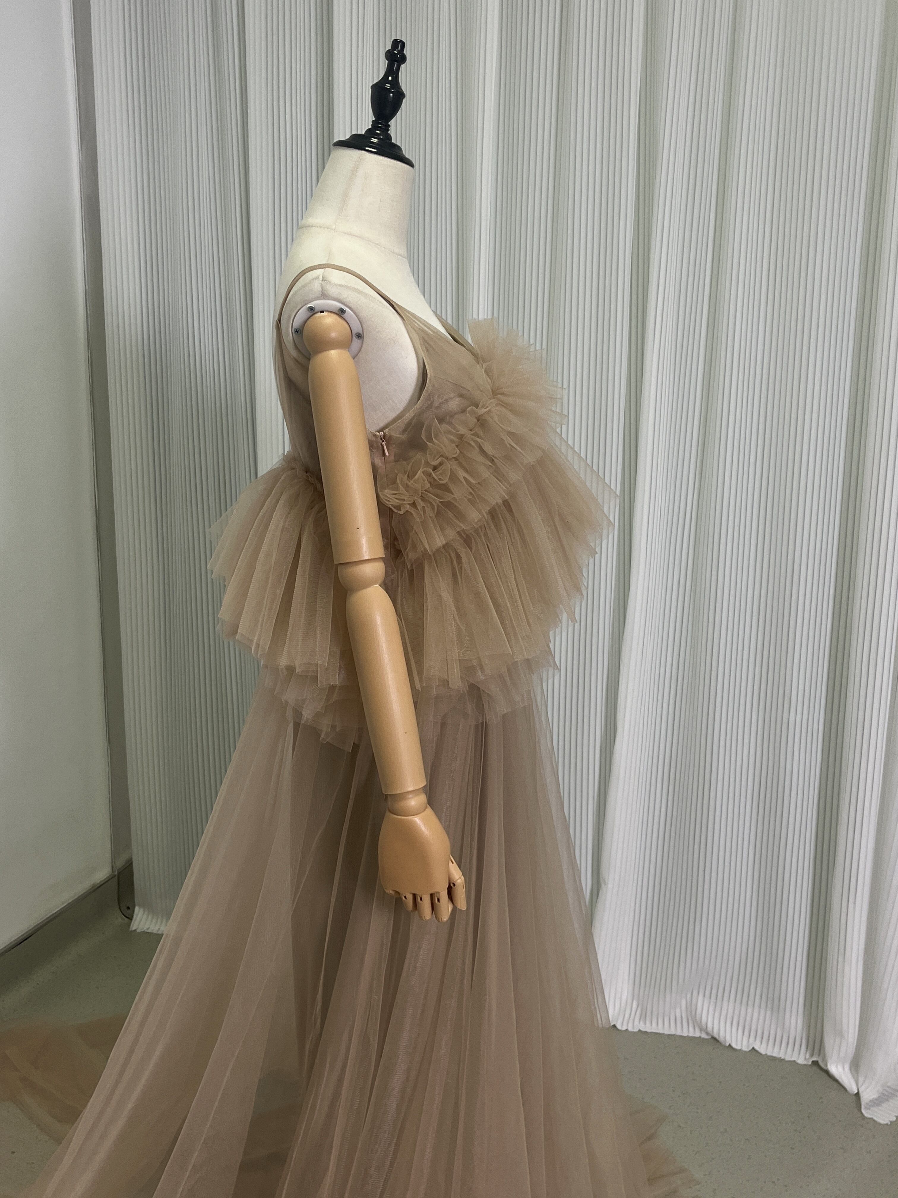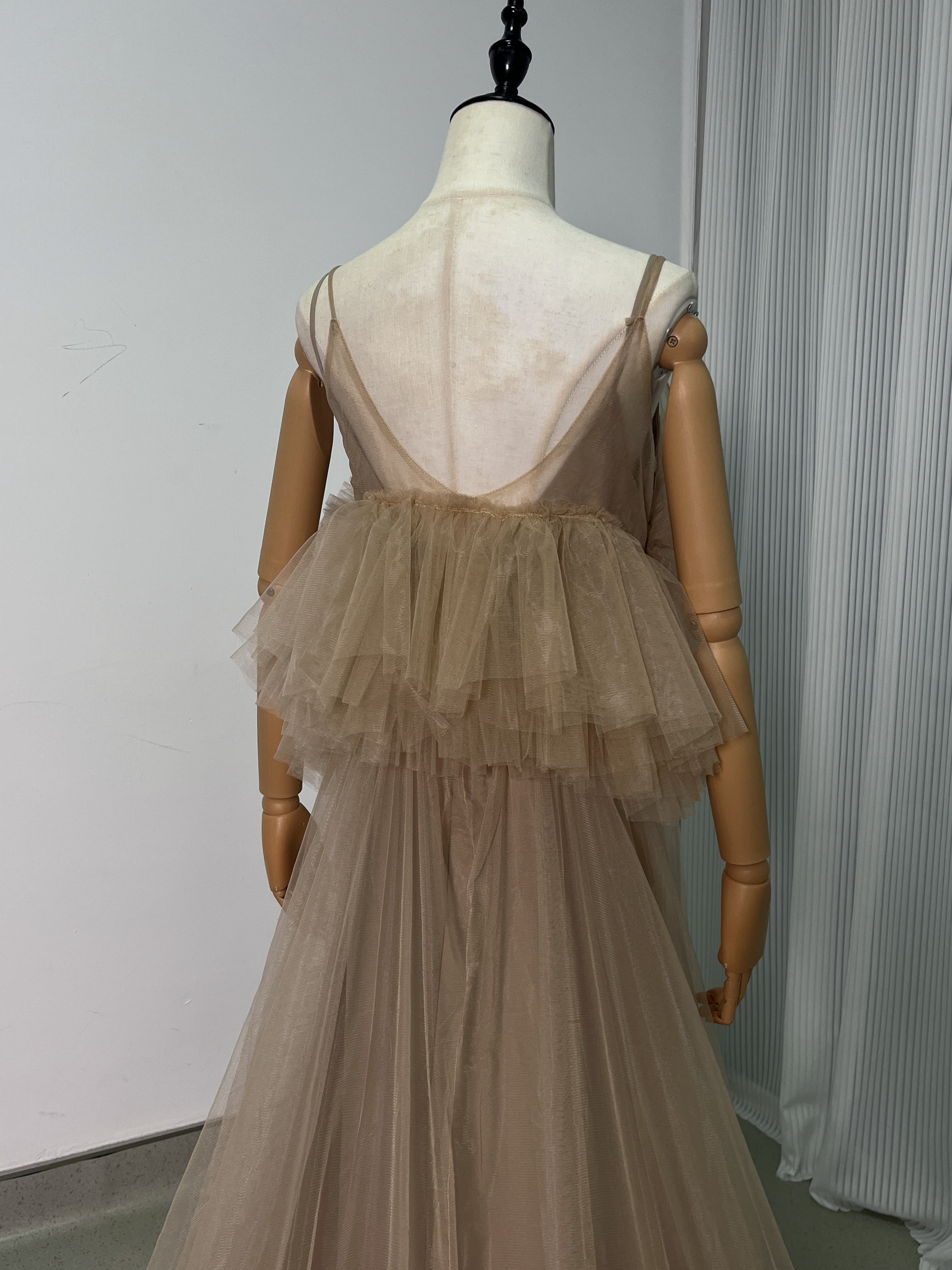 上品!ペールトーンの ソフトチュールドレス カラードレスオーバースカート+いベージュ系のキャミソール