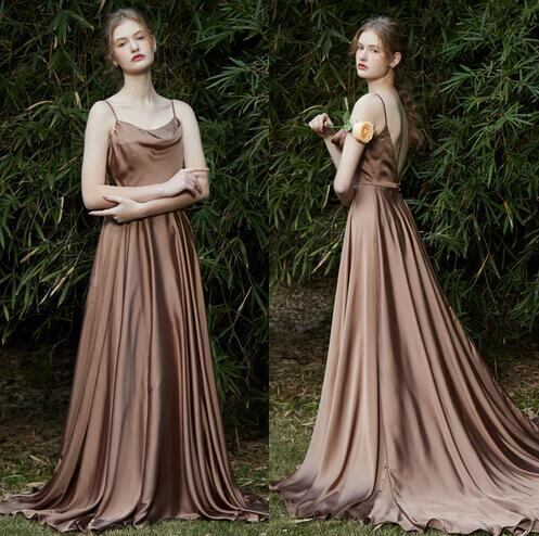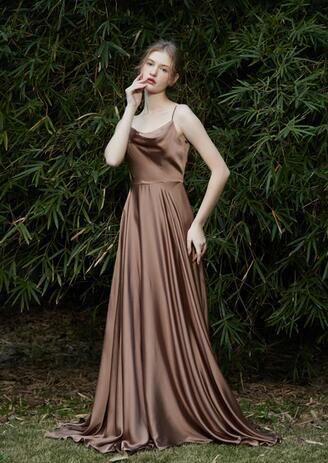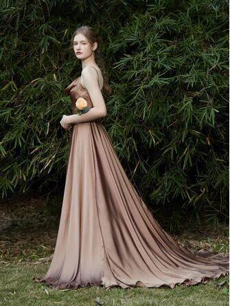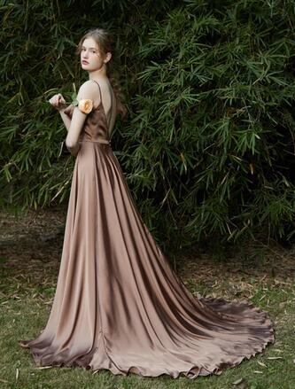 送料無料!パーティドレス カラードレス キャミソール 背中見せ/バックレス ブラウン 優雅なシルエット 高みせ 柔らかい かわいい トレーン/ロング(ご指定自由)!前撮り パーティー/披露宴/結婚式/花嫁/二次会 | David1021k Dress(ダヴィドレス)