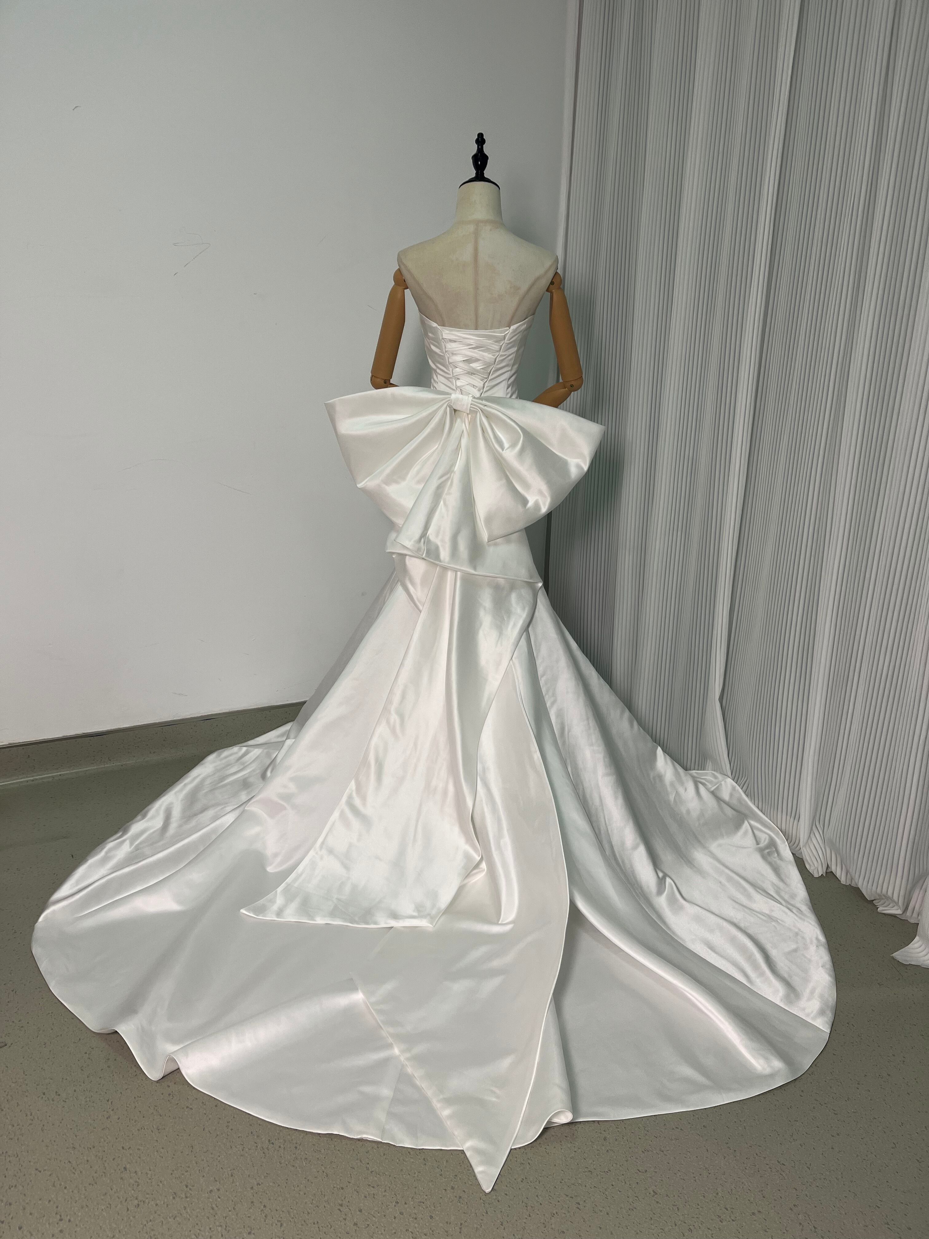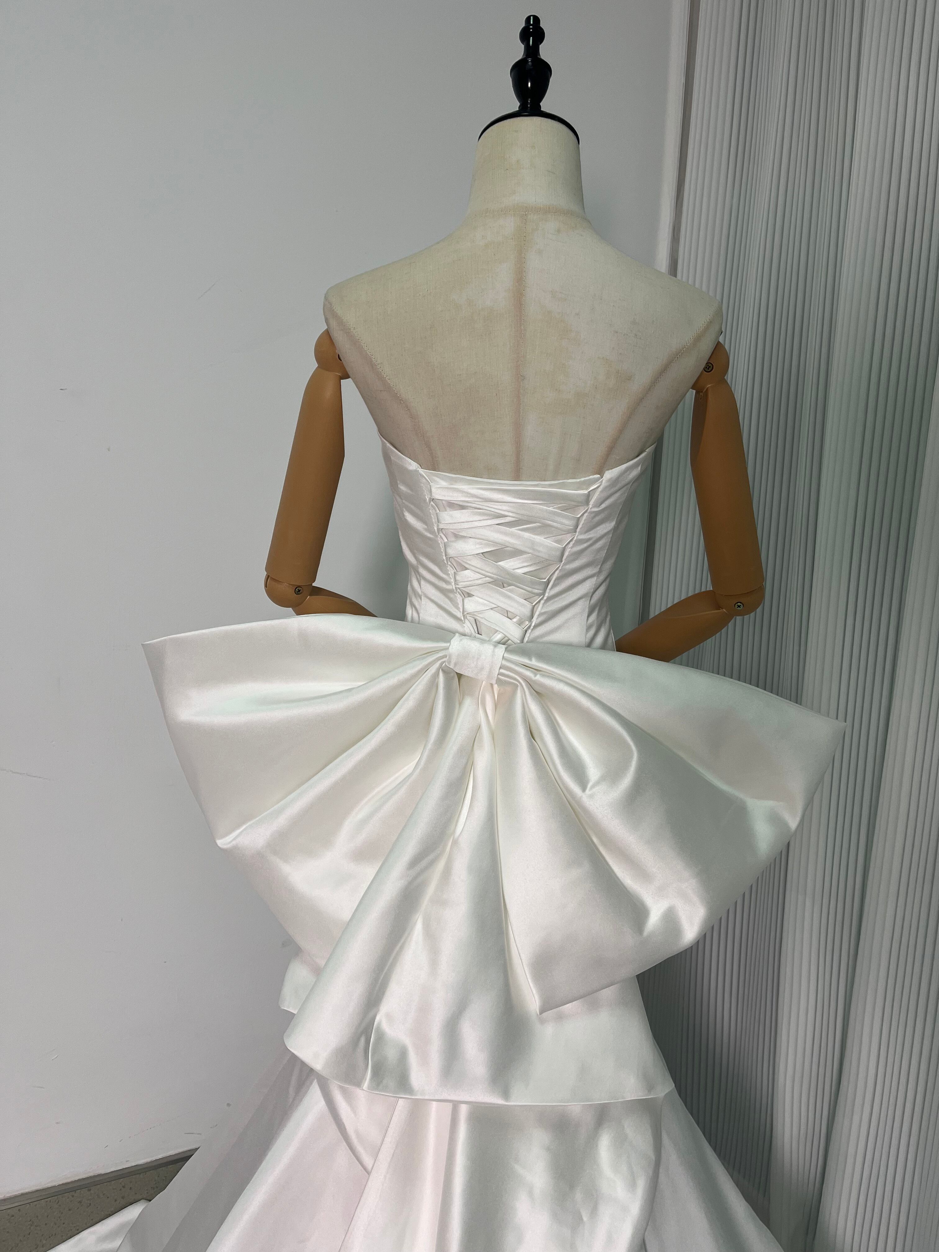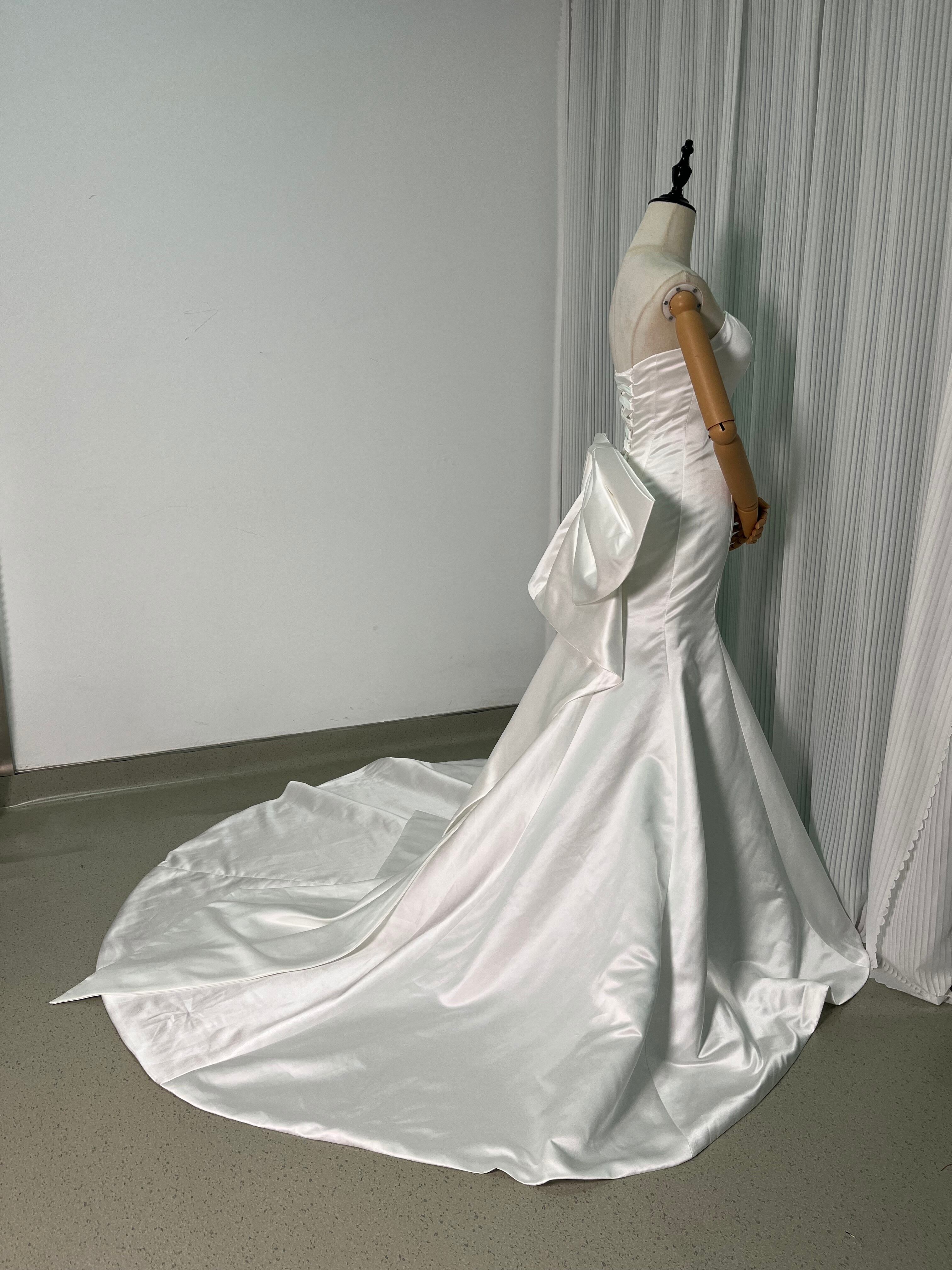 高品質! オフショルダー ウエディングドレス ふっくら柔らかなバックリボン /ロング(ご指定自由)!前撮り パーティー/披露宴/結婚式/花嫁/二次会 | David1021k Dress(ダヴィドレス)
