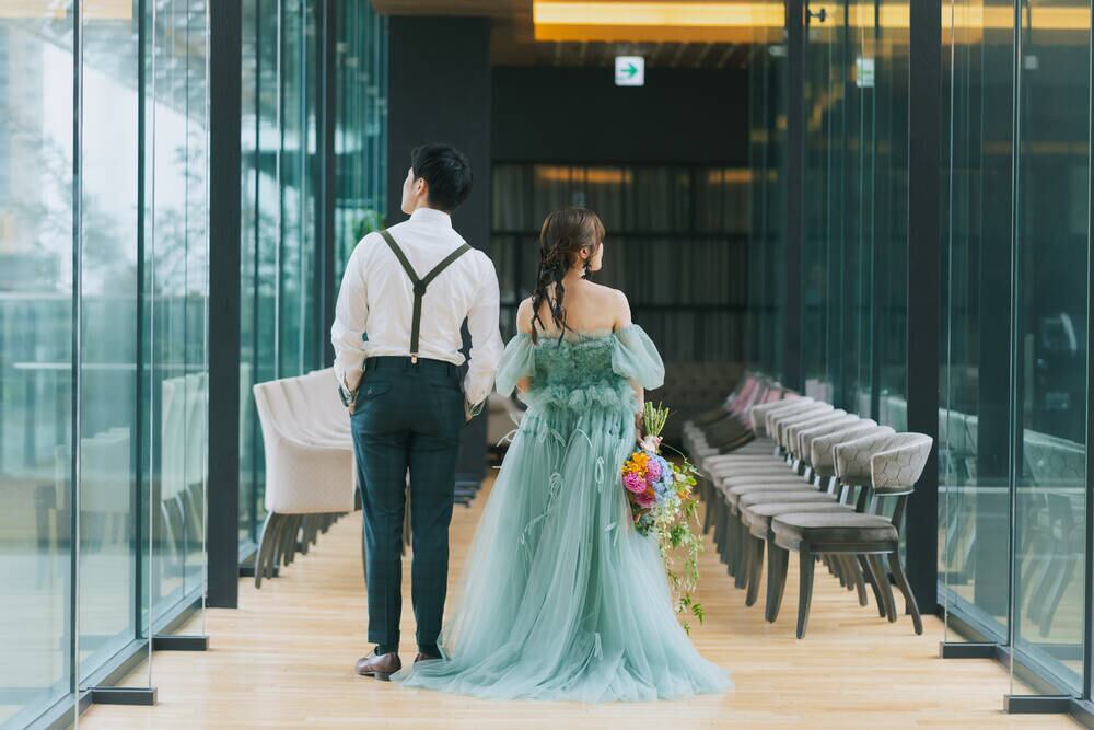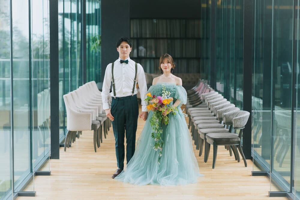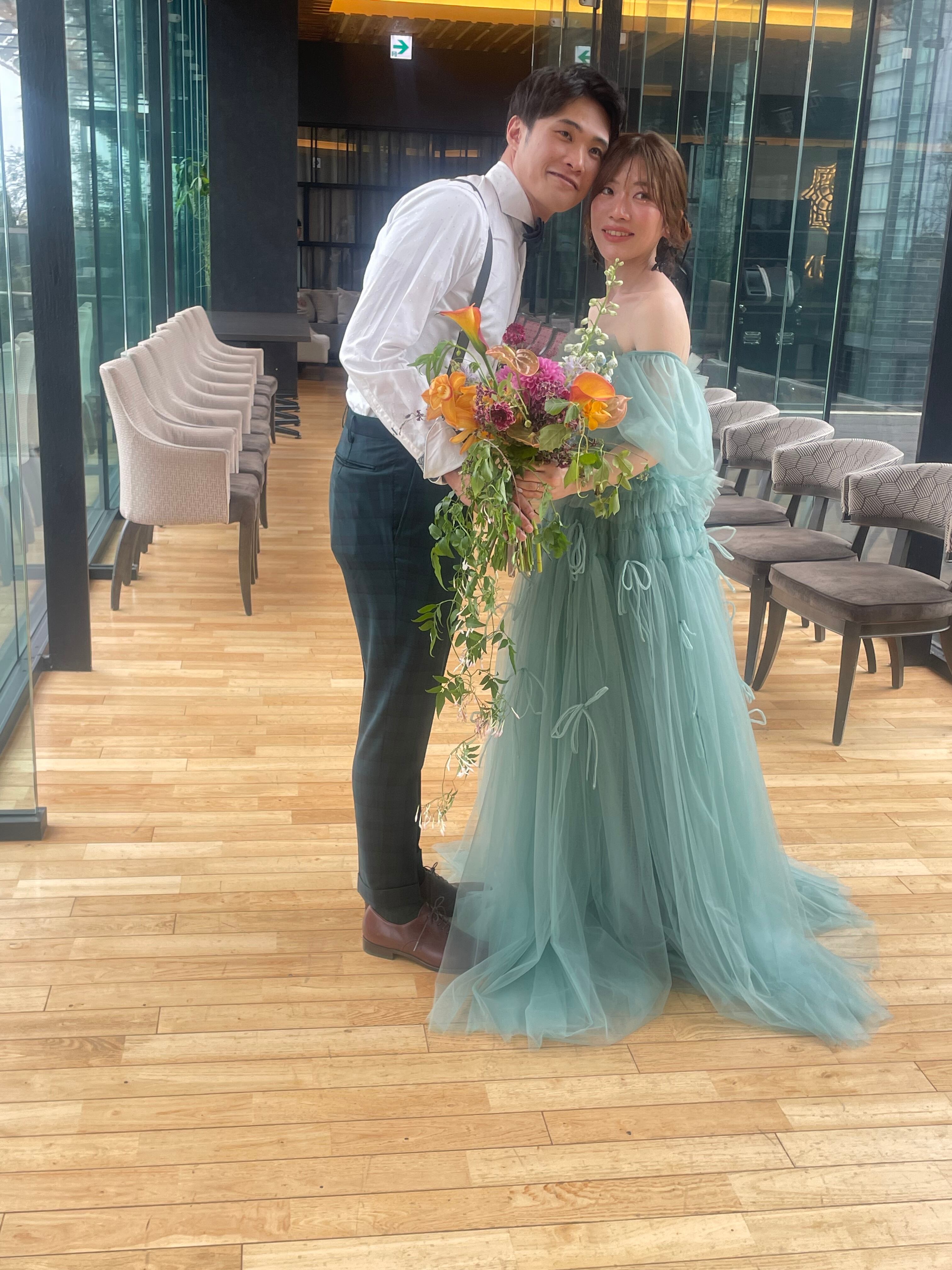 実例写真! 上品! グリーン カラードレス ソフトチュール前撮り パーティー/披露宴/結婚式