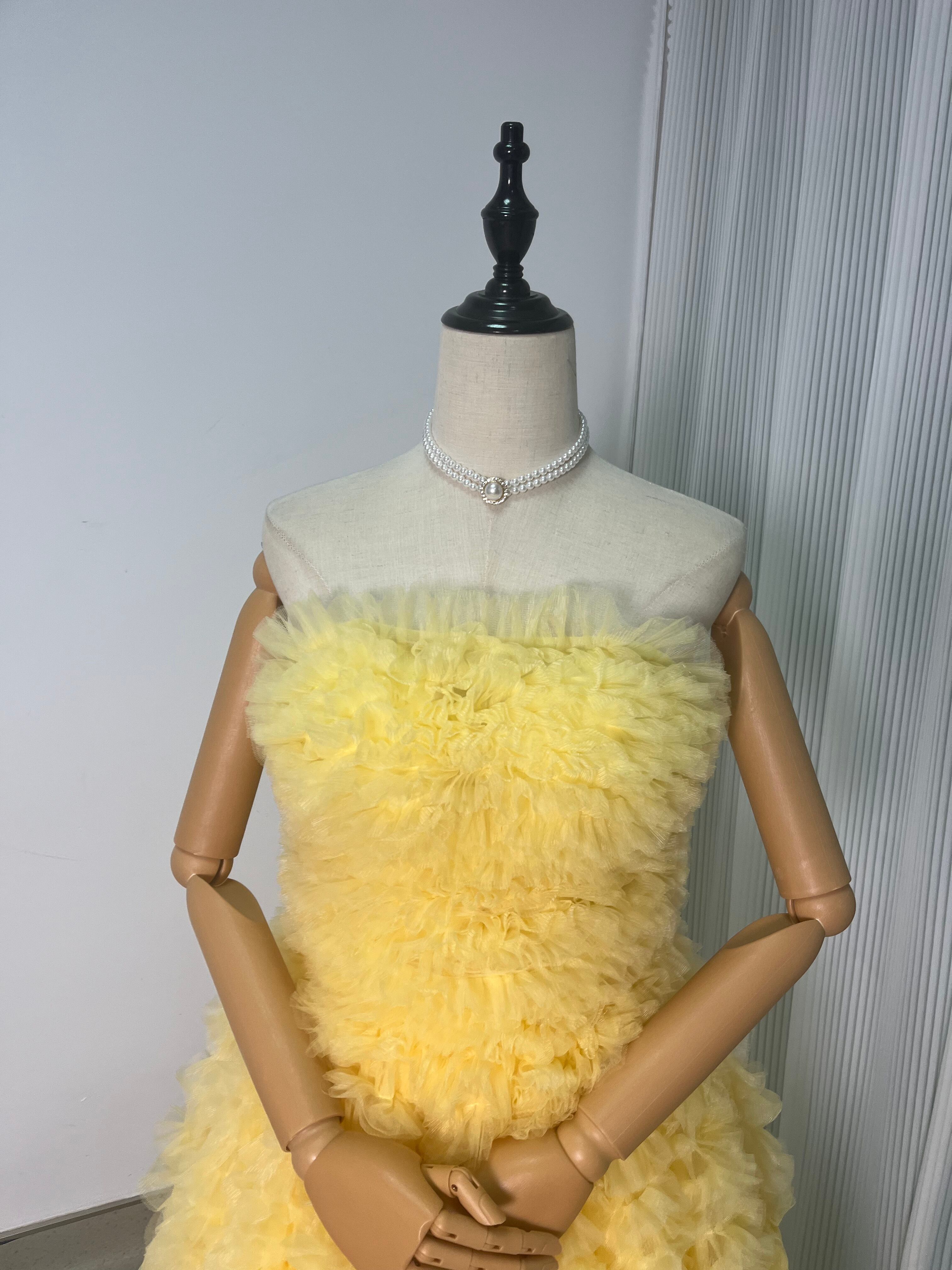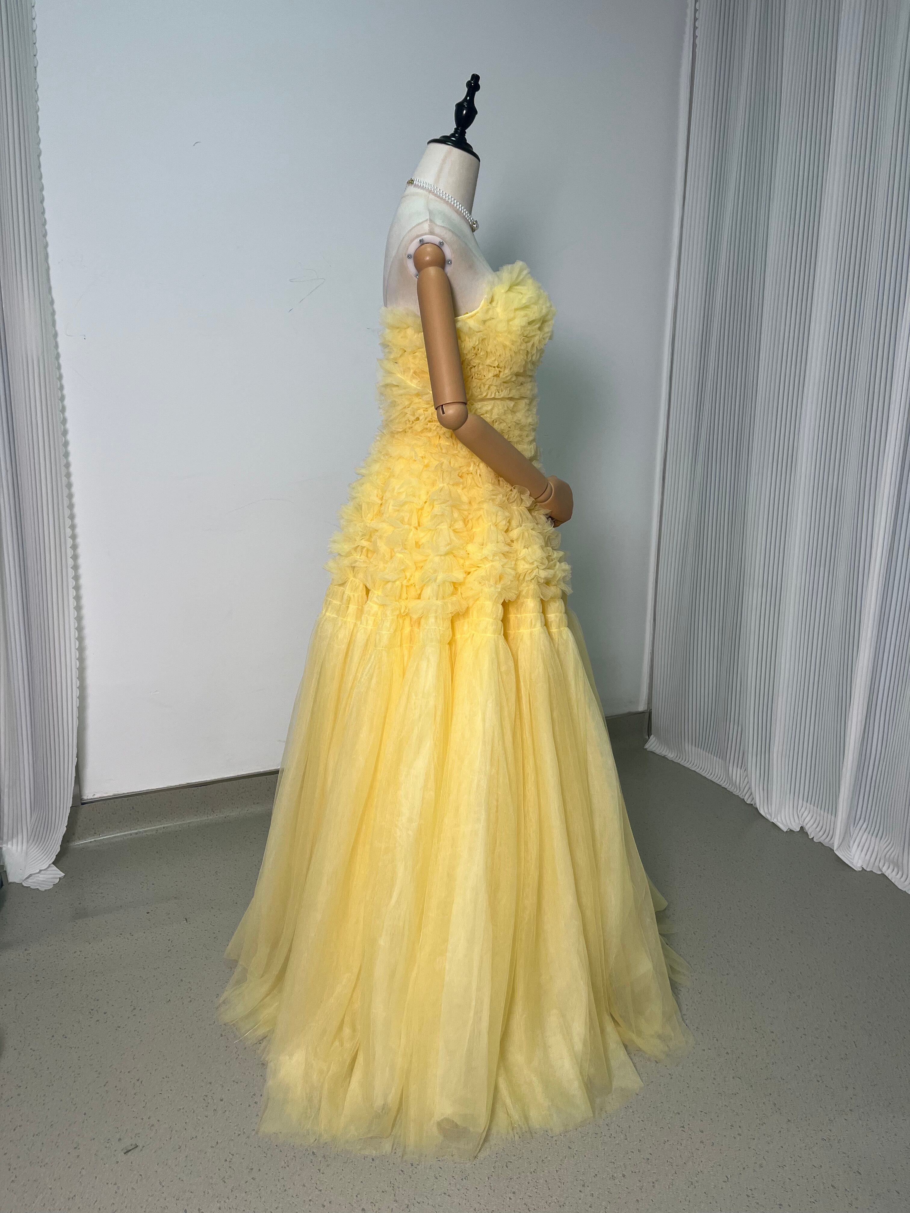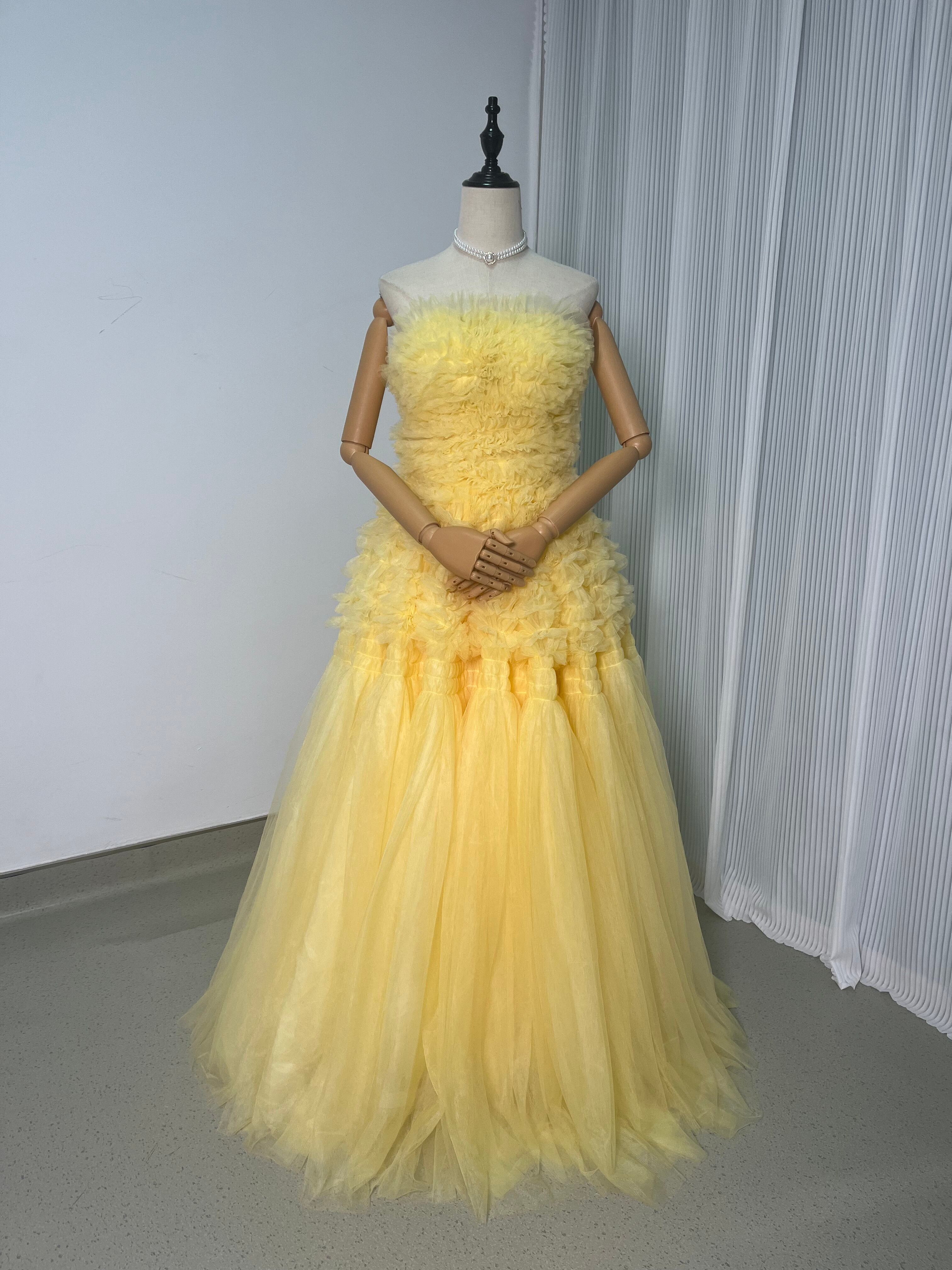 上品!イエロー オフショルダー カラードレス パーティドレス スパンコール ノースリーブ /ロング(ご指定自由)!前撮り パーティー/披露宴/結婚式