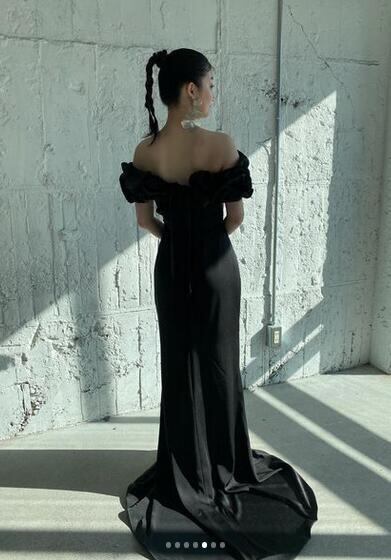 送料無料!カラードレス 黒/ブラック 美しい 取り外し可能オフショルダー マーメイドライン 優雅なシルエット かわいい ビスチェドレス トレーン/ロング(ご指定自由)!前撮り パーティー/披露宴/結婚式/花嫁/二次会 | David1021k Dress(ダヴィドレス)