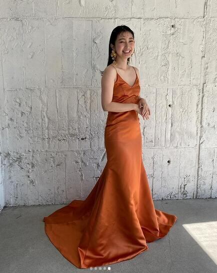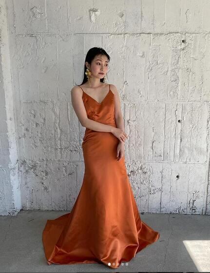 上品!カラードレス テラコッタ/レンガ色 Vネック キャミソール 美しい マーメイドライン 優雅なシルエット かわいい ビスチェドレス トレーン/ロング(ご指定自由)!前撮り パーティー/披露宴/結婚式/花嫁/二次会 | David1021k Dress(ダヴィドレス)