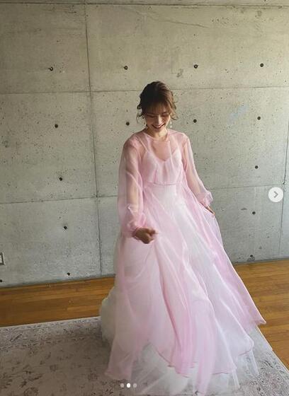 送料無料!ウエディングドレス オーバードレス ピンク ソフトチュール ボレロ 長袖 かわいい トレーン/ロング(ご指定自由)!前撮り パーティー/披露宴/結婚式/花嫁/二次会 | David1021k Dress(ダヴィドレス)