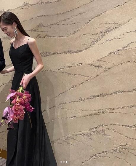 送料無料!カラードレス Vネック 美しい ブラック/黒 キャミソール ソフトチュール セクシー 優雅なシルエット かわいい トレーン/ロング(ご指定自由)!前撮り パーティー/披露宴/結婚式/花嫁/二次会 | David1021k Dress(ダヴィドレス)