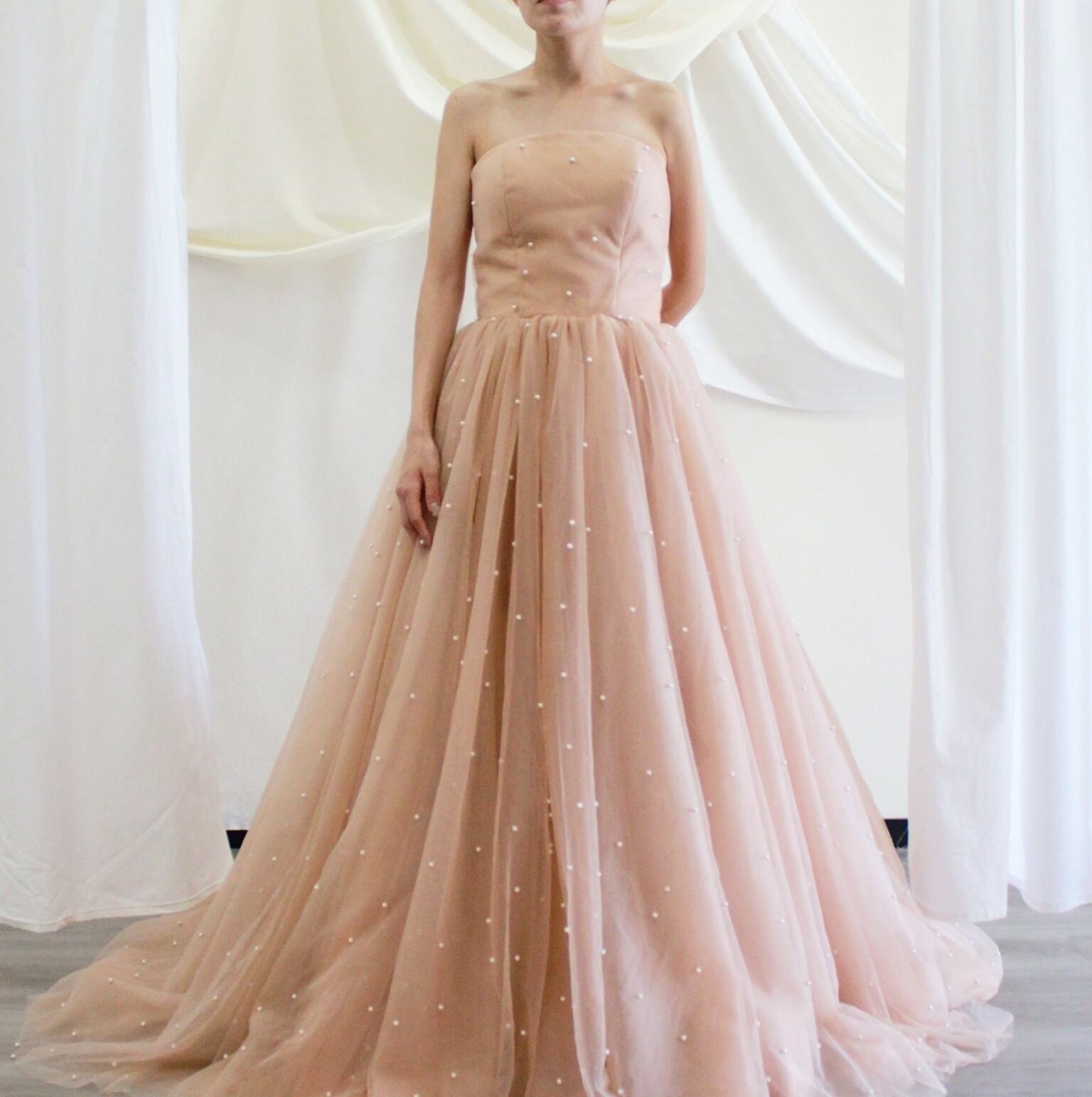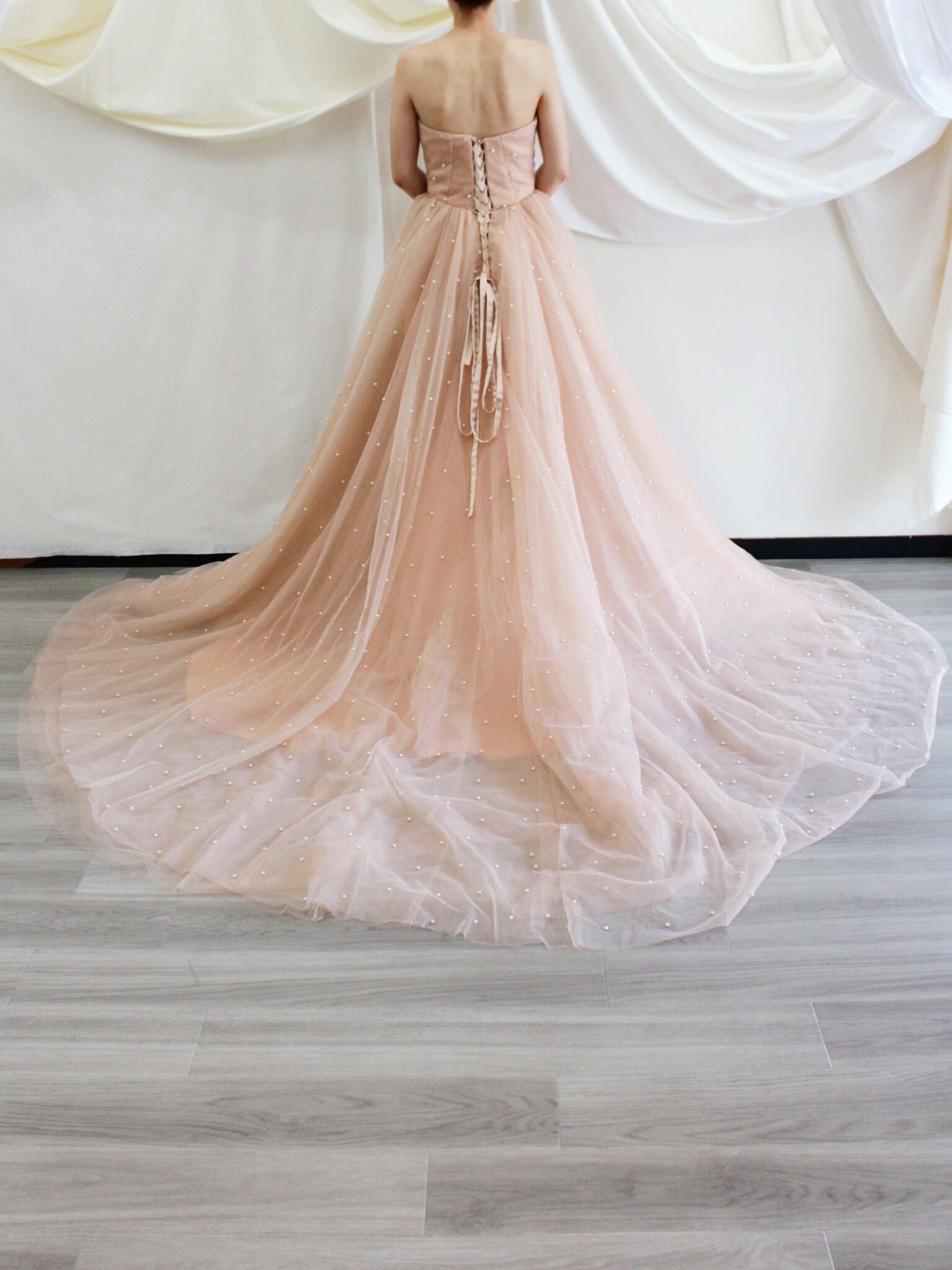 ピンク ベアトップ カラードレス (ご指定自由)!ソフトチュール 前撮り パーティー/披露宴/結婚式/花嫁/二次会