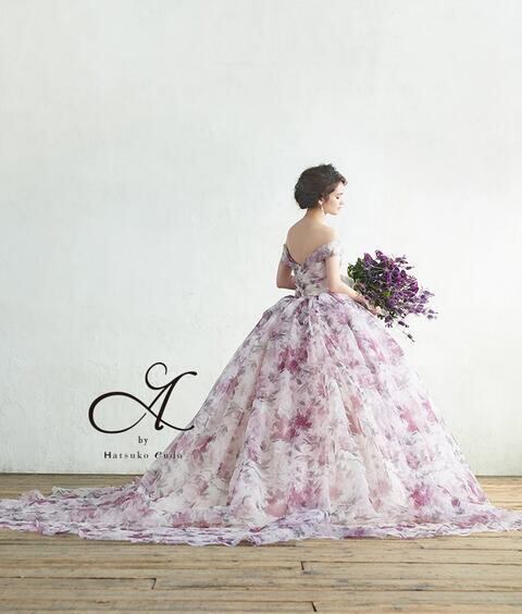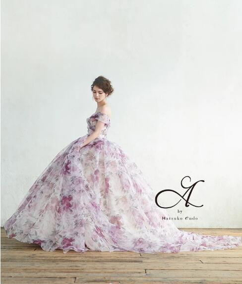 送料無料!カラードレス 花 オフショルダー 美しい花模様 エレガント レース プリンセスライン 素敵 かわいい フルオーダー可能 トレーン/ロング(ご指定自由)!前撮り パーティー/披露宴/結婚式/花嫁/二次会 | David1021k Dress(ダヴィドレス)
