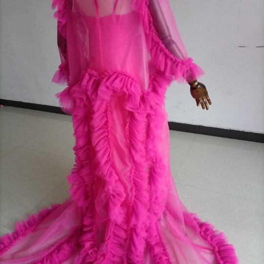 送料無料! ビビッドピンク ブルーオンショルダードレス+ ケープ風もこもこドレス 抜群のおしゃれ見え 前撮り結婚式