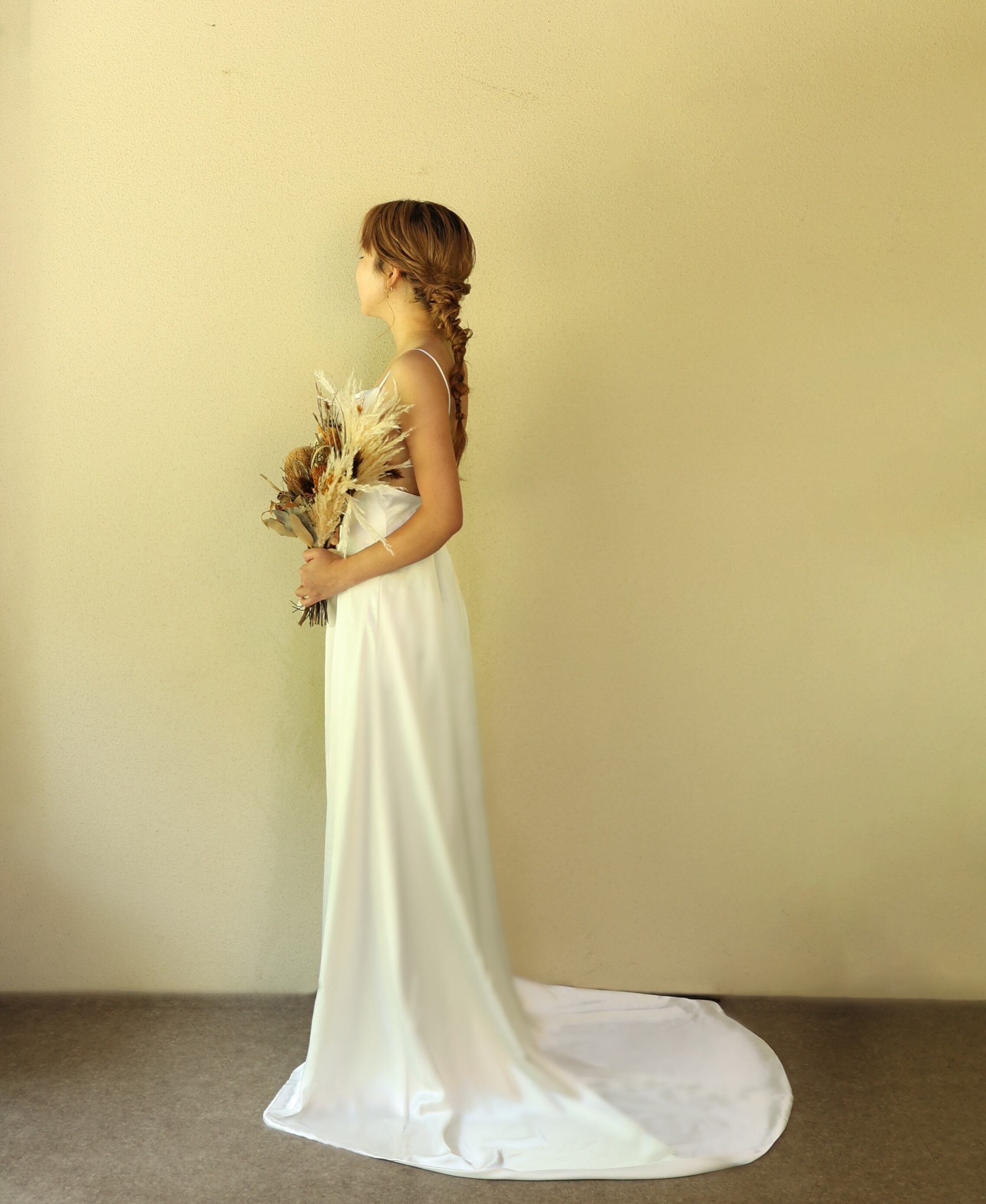 ホワイト キャミソール ウエディングド ス レンダーライン/花嫁