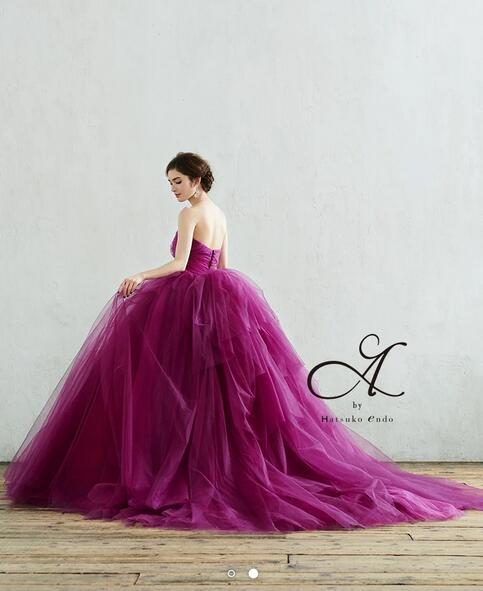 送料無料!人気上昇!カラードレス パーティードレス 柔らかく重ねたチュールスカート 華やかなトレーン 結婚式 オシャレ ハンドメイド ビスチェドレス オーダードレス プリンセスライン 結婚式/前撮り/二次会 | David1021k Dress(ダヴィドレス)